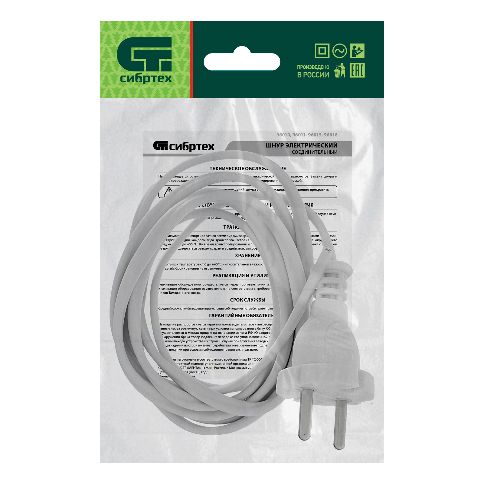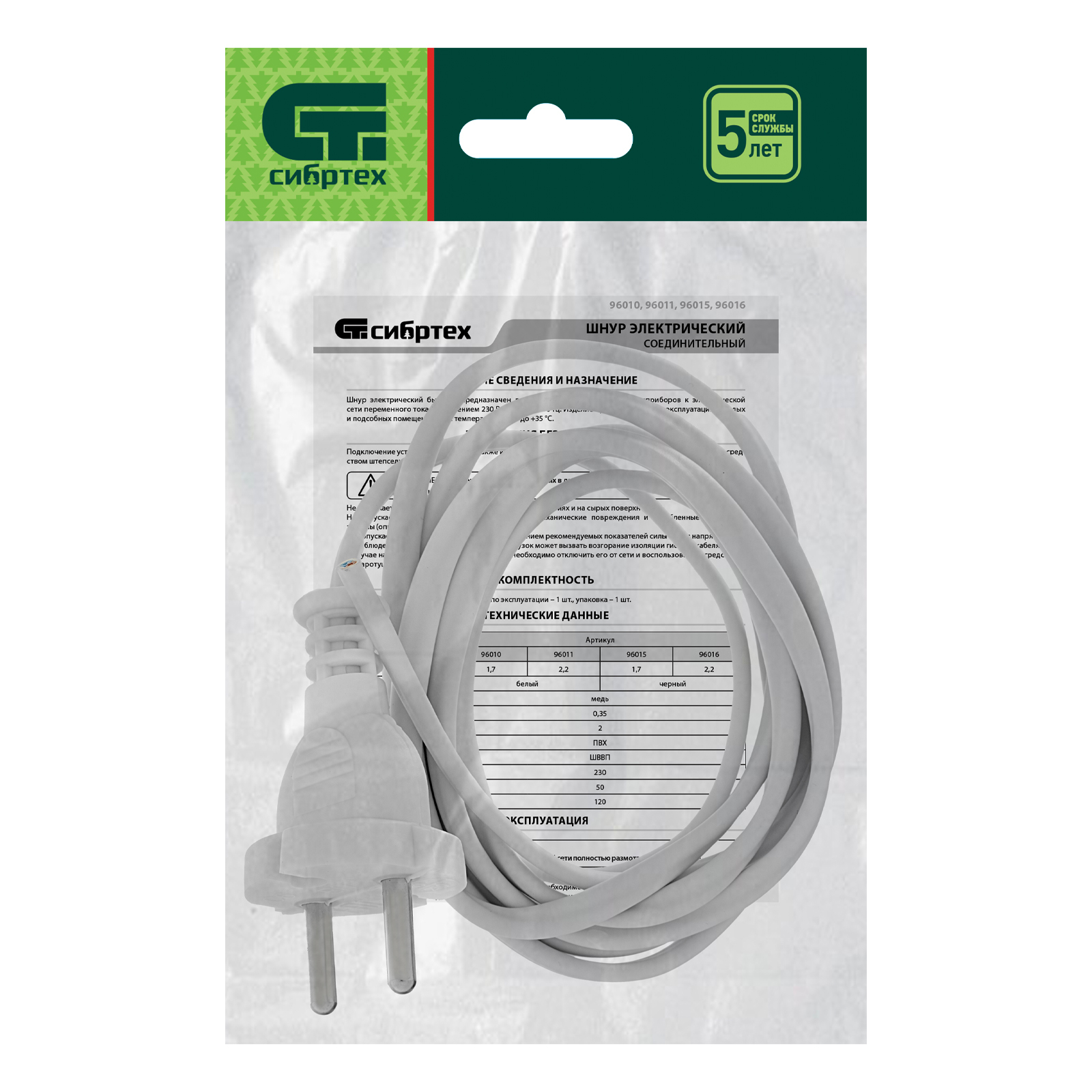 Шнур электрический соединительный, для настольной лампы, 1.7 м, 120 Вт, белый, тип V-1 Сибртех