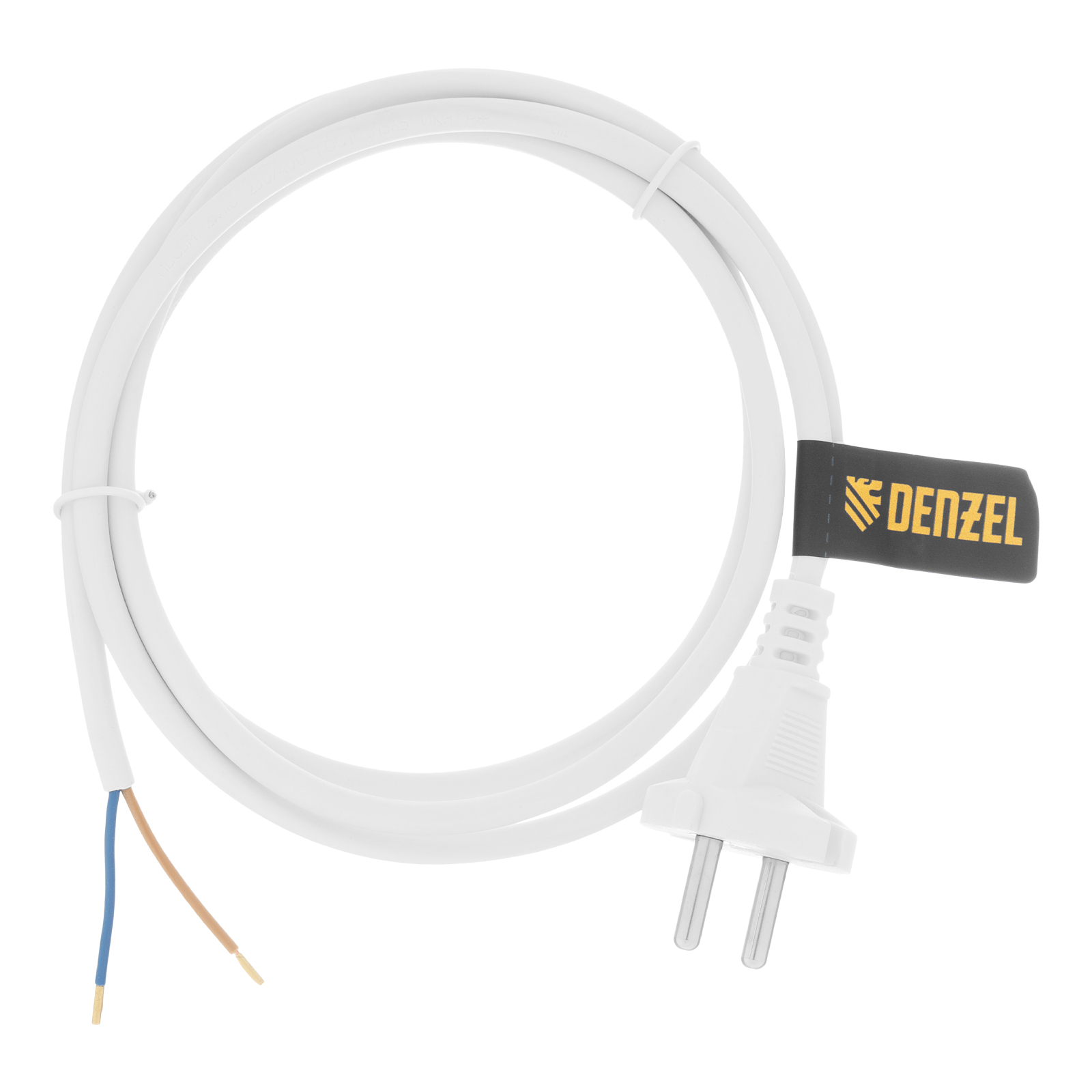 Шнур сетевой Energy Series, ПВС, 1,5 м, 2 x 1 мм, с неразборной вилкой, белый, Denzel