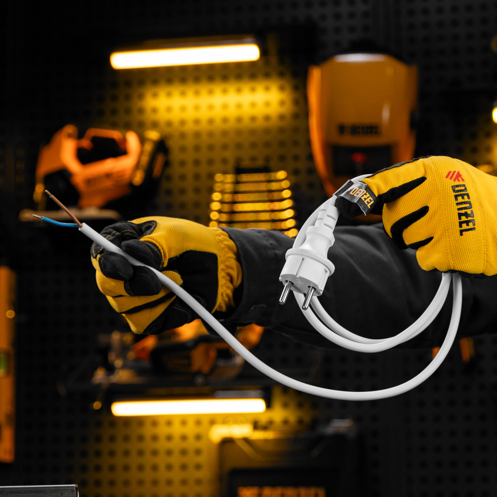 Шнур сетевой Energy Series, ПВС, 1,5 м, 2 x 1,5 мм, с неразборной вилкой, белый, Denzel
