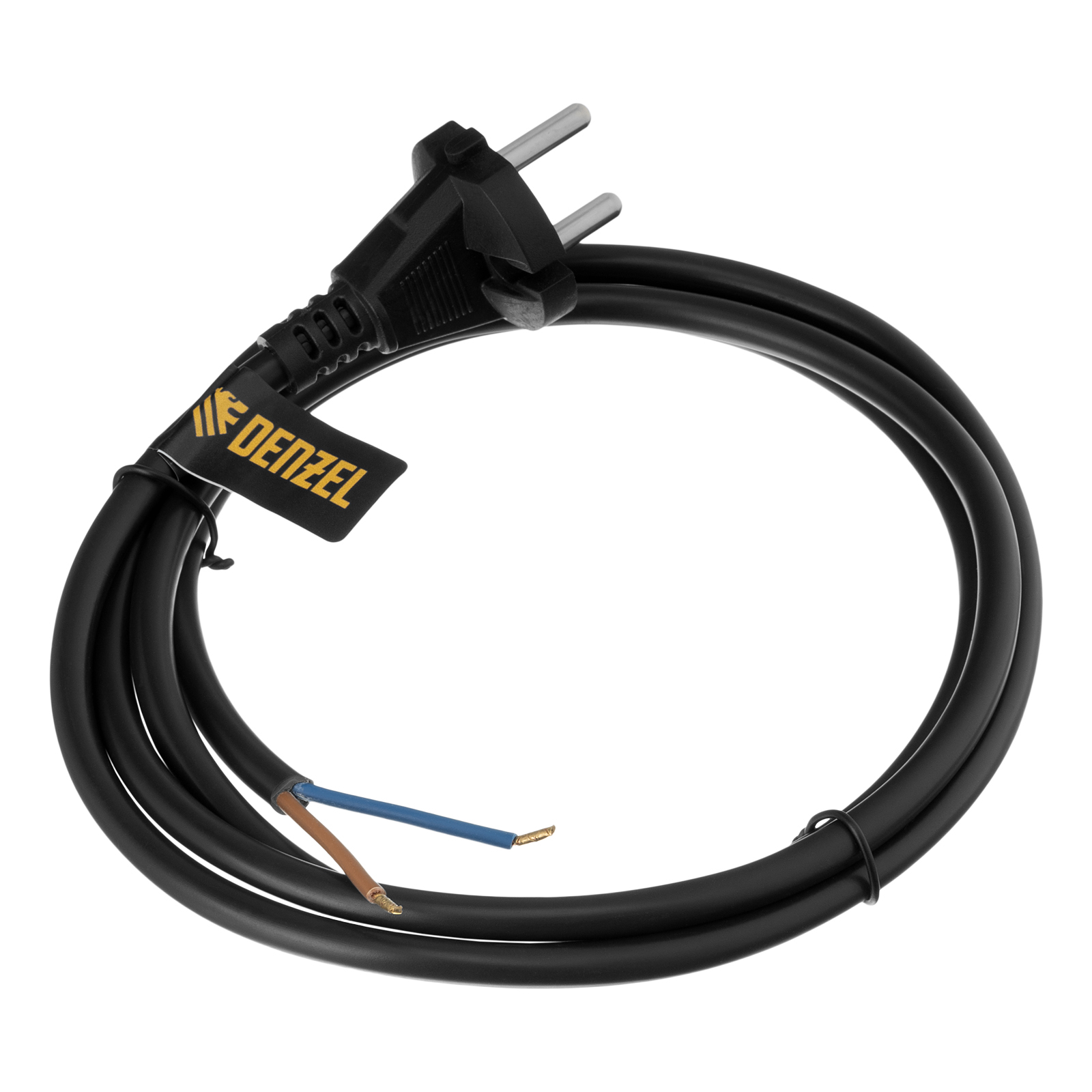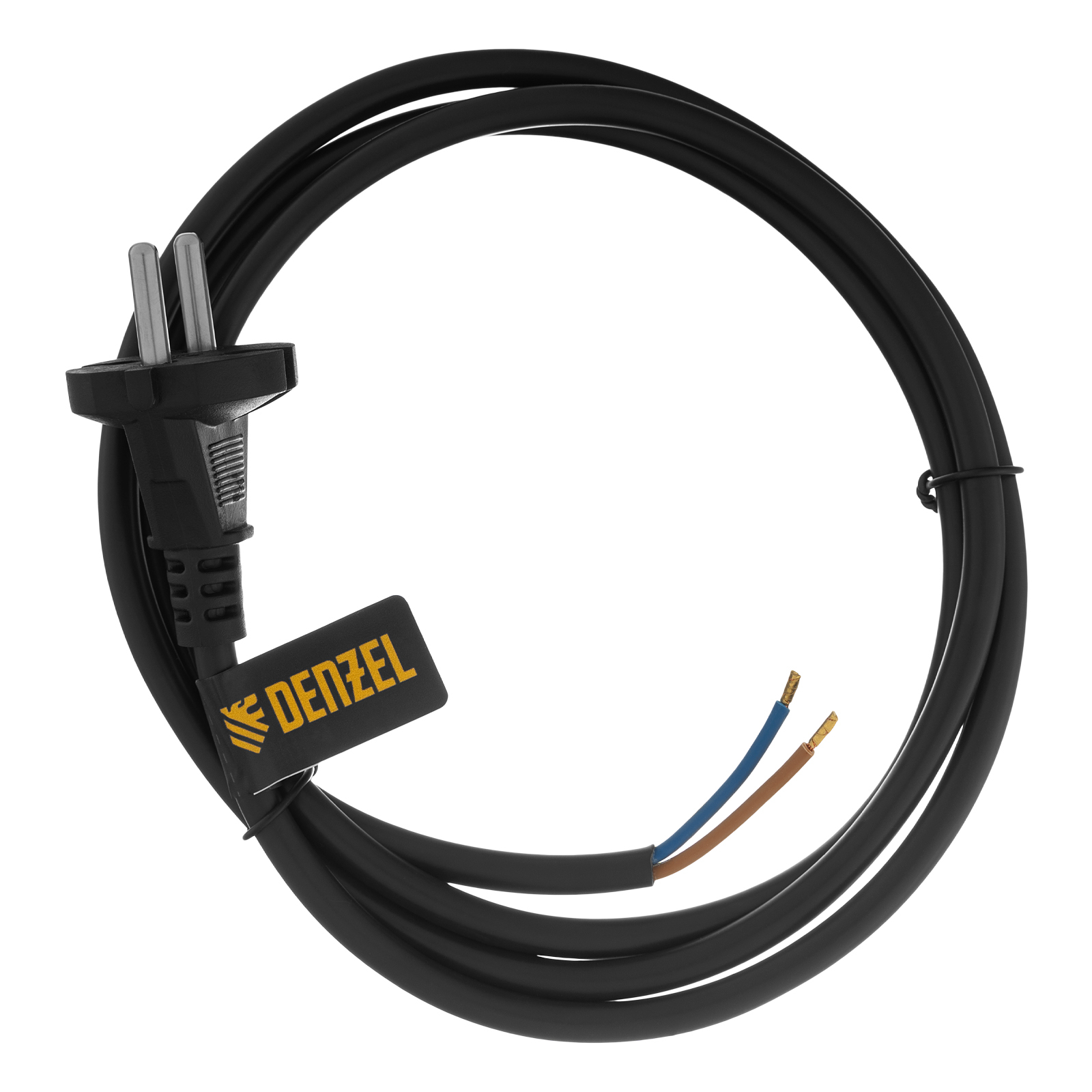 Шнур сетевой Energy Series, ПВС, 1,5 м, 2 x 1,5 мм, с неразборной вилкой, черный, Denzel