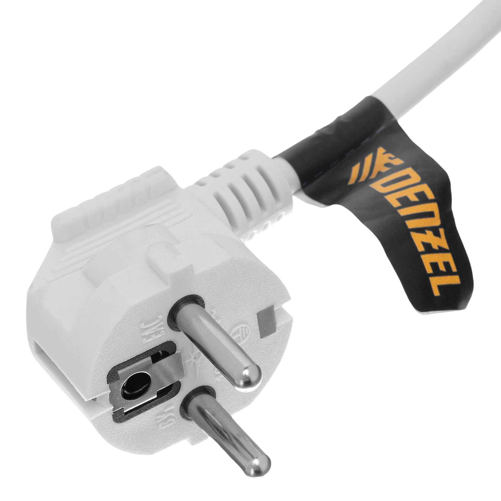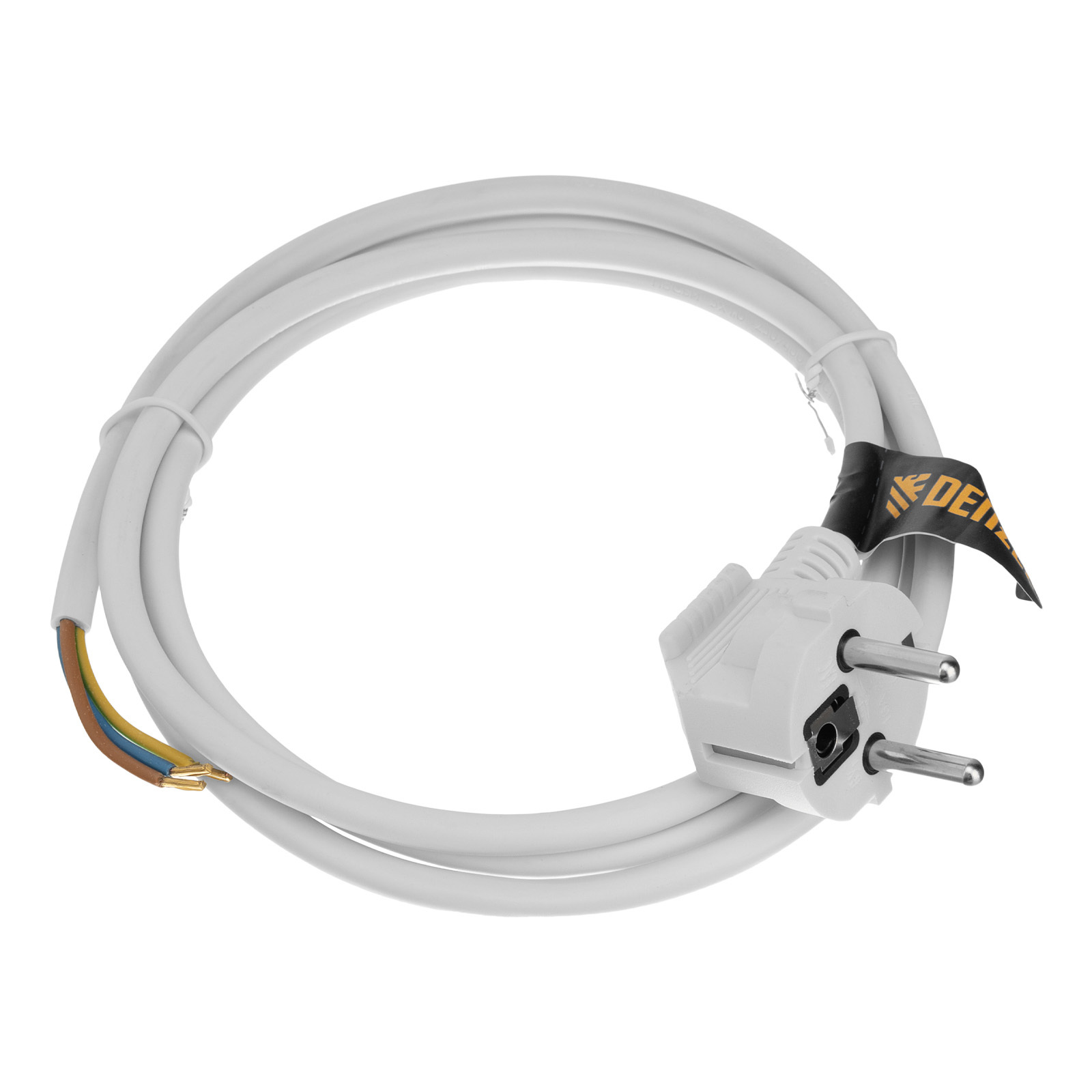 Шнур сетевой Energy Series, ПВС, 1,5 м, 3 x 1 мм, с неразборной вилкой, белый, Denzel