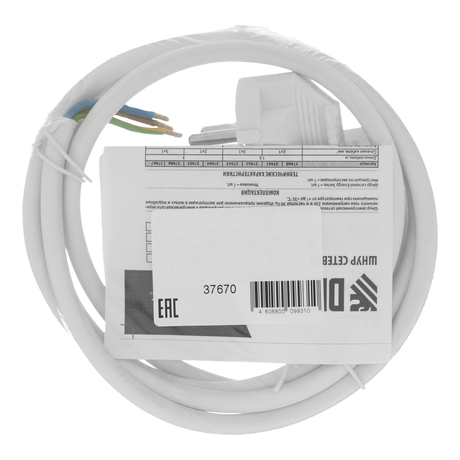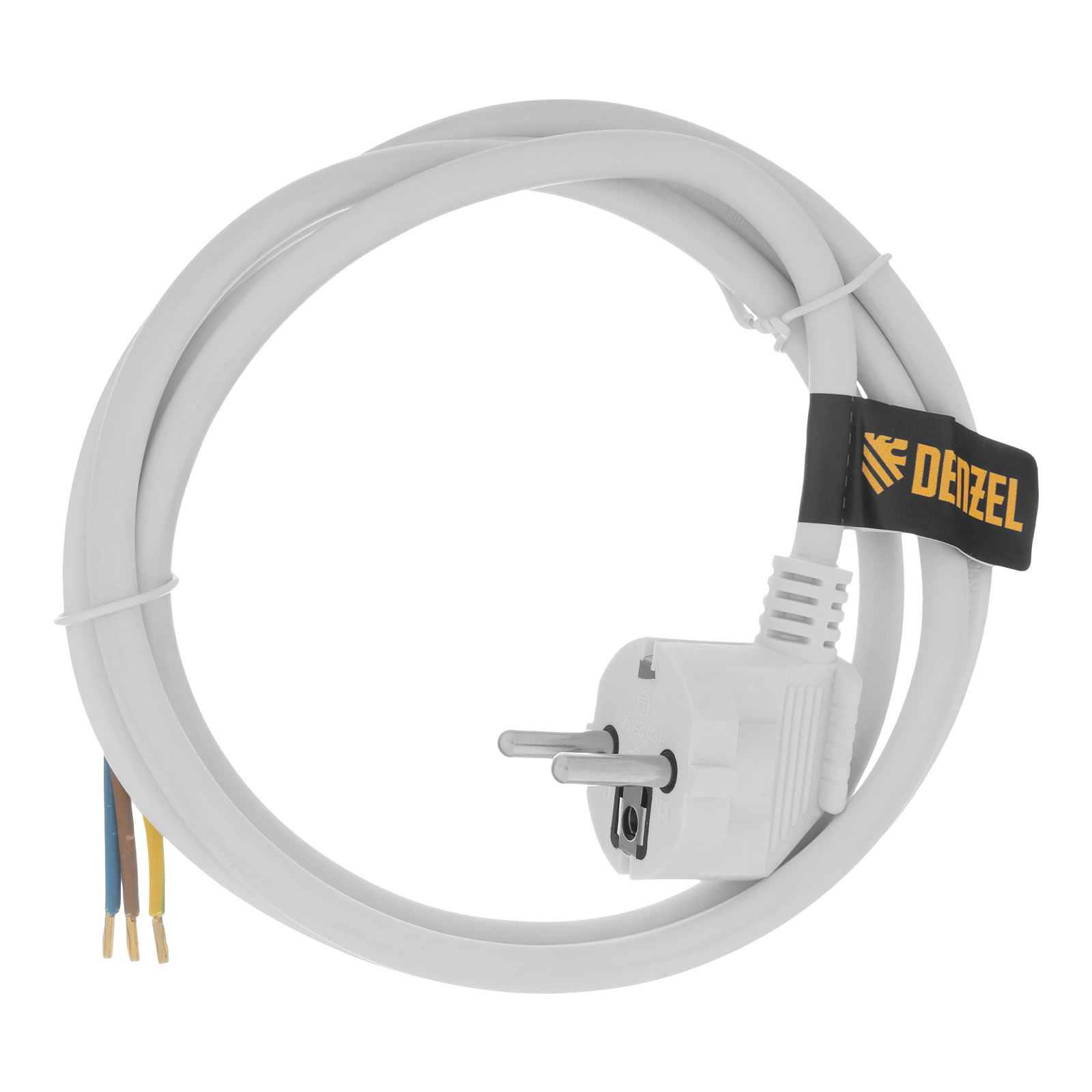 Шнур сетевой Energy Series, ПВС, 1,5 м, 3 x 1,5 мм, с неразборной вилкой, белый, Denzel