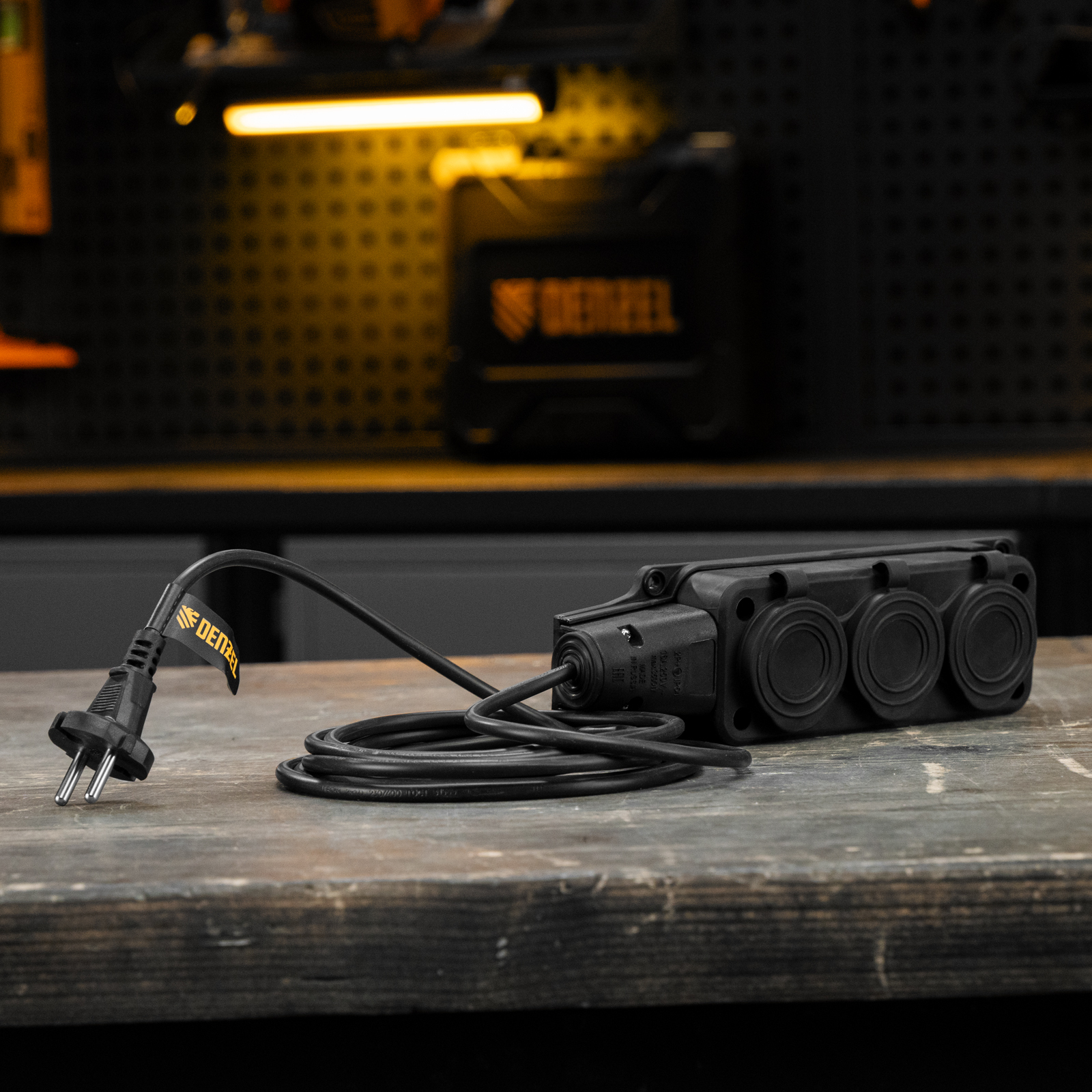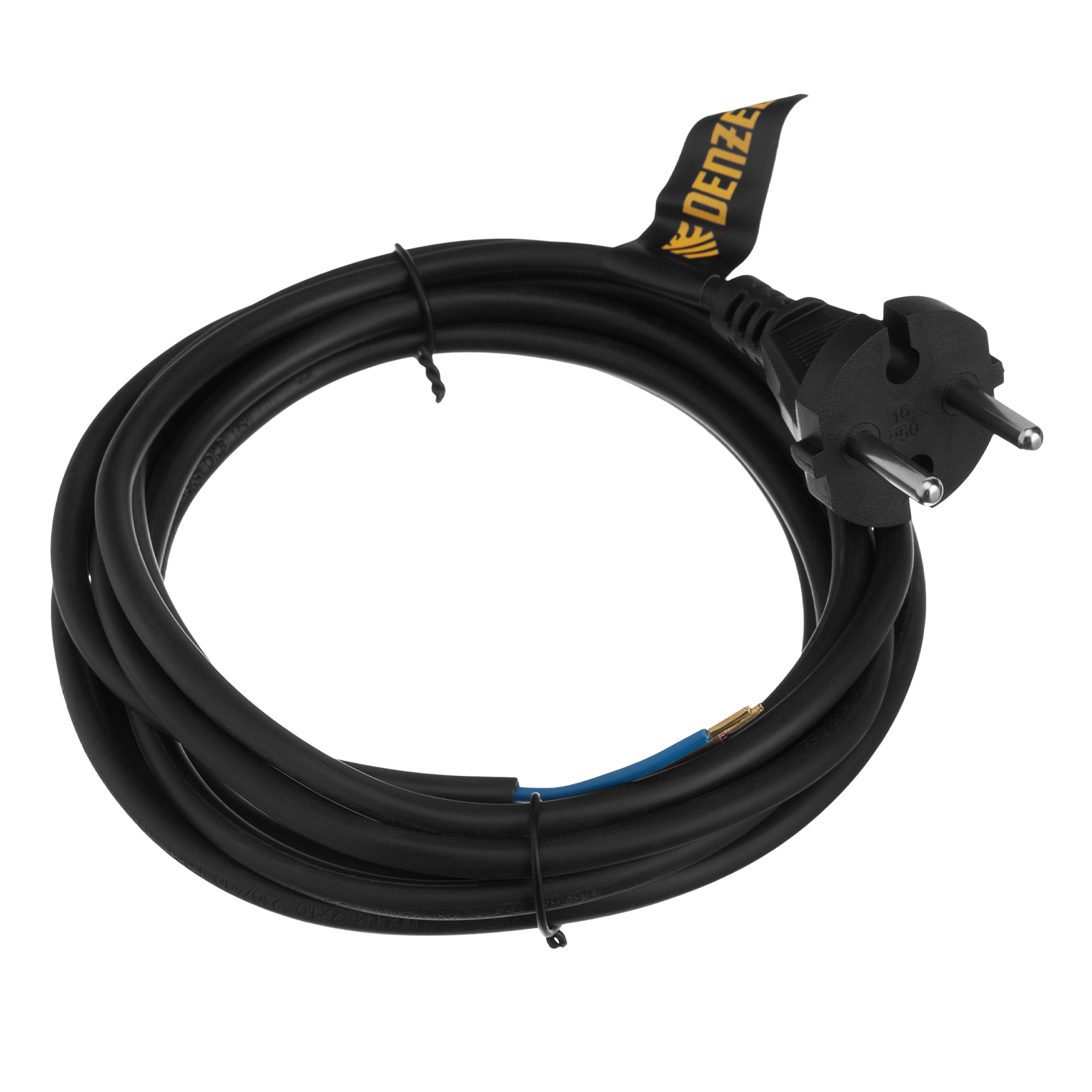 Шнур сетевой Energy Series, ПВС, 3 м, 2 x 1 мм, с неразборной вилкой, черный, Denzel