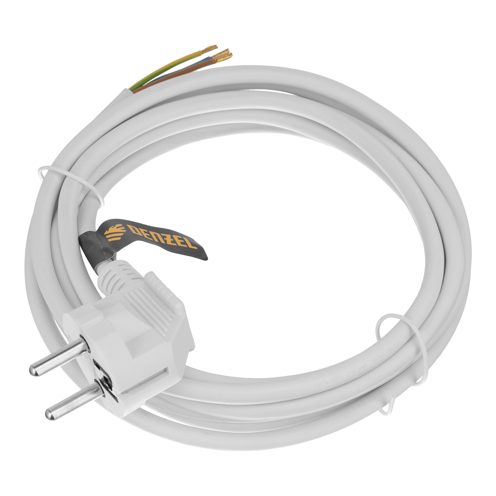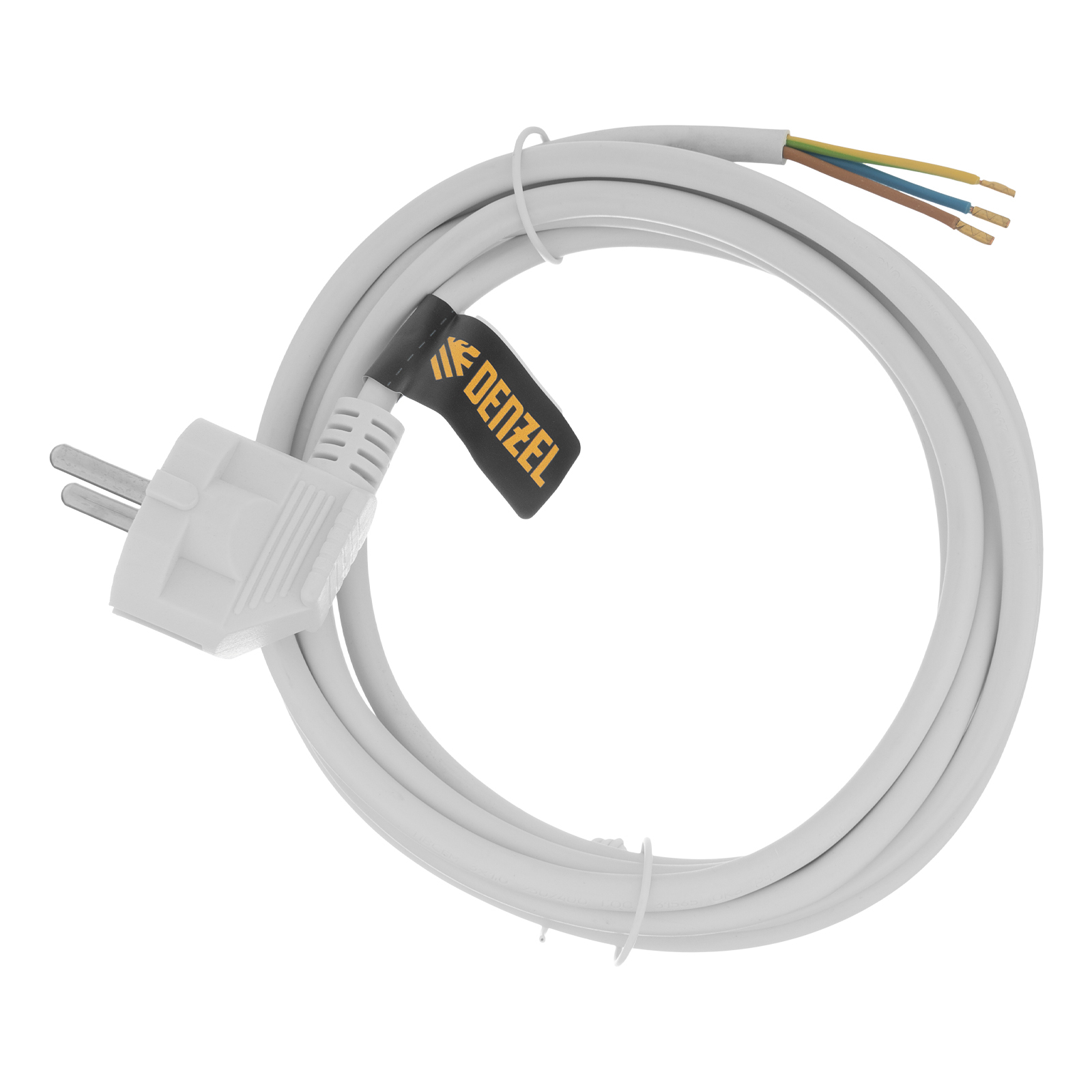 Шнур сетевой Energy Series, ПВС, 3 м, 3 x 1 мм, с неразборной вилкой, белый, Denzel