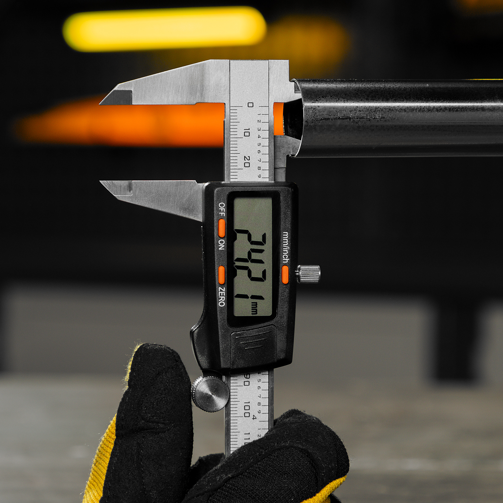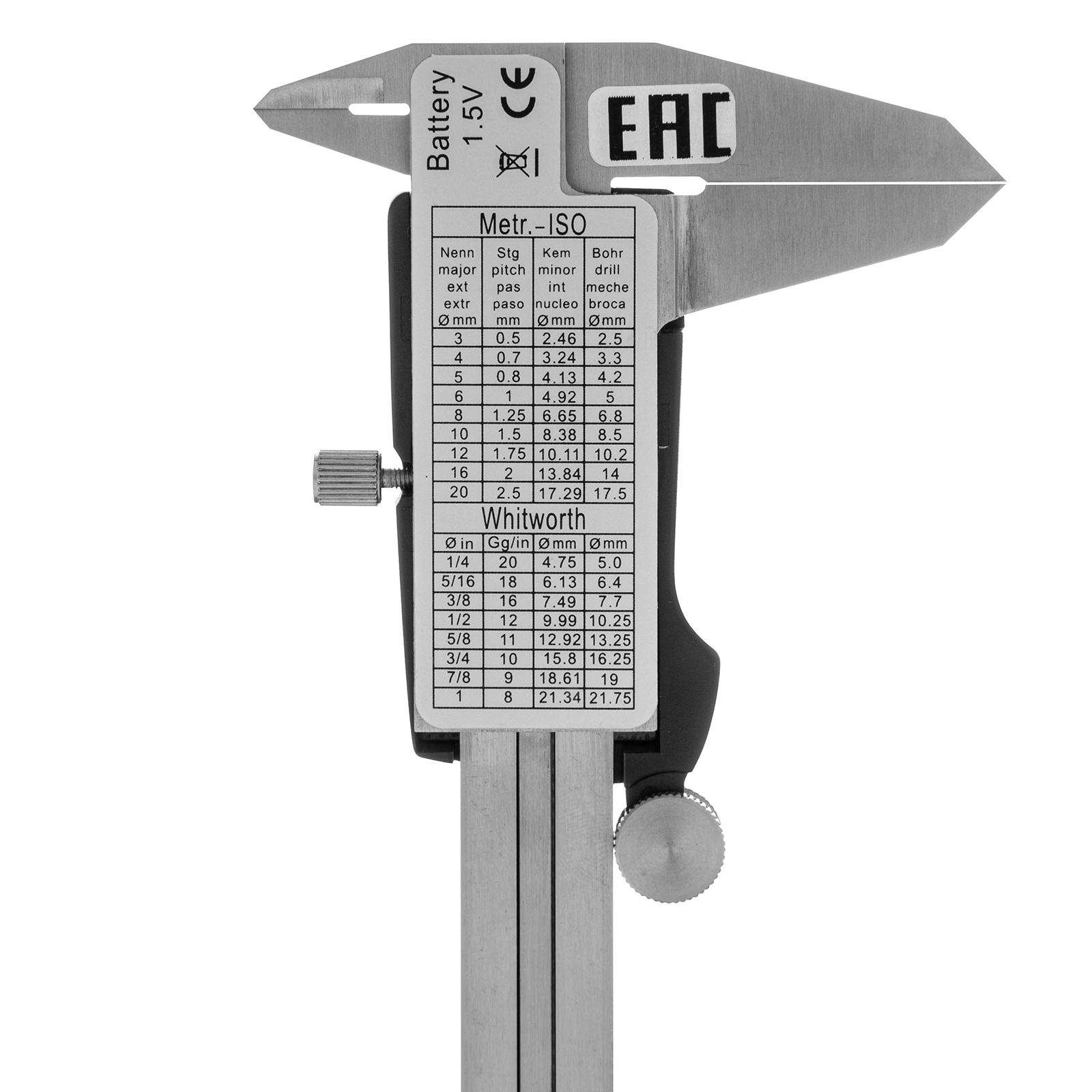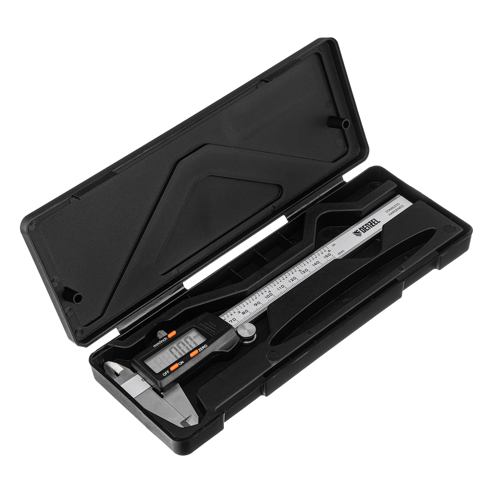 - Безопасная транспортировка и хранение — штангенциркуль упакован в прочный пластиковый кейс.
