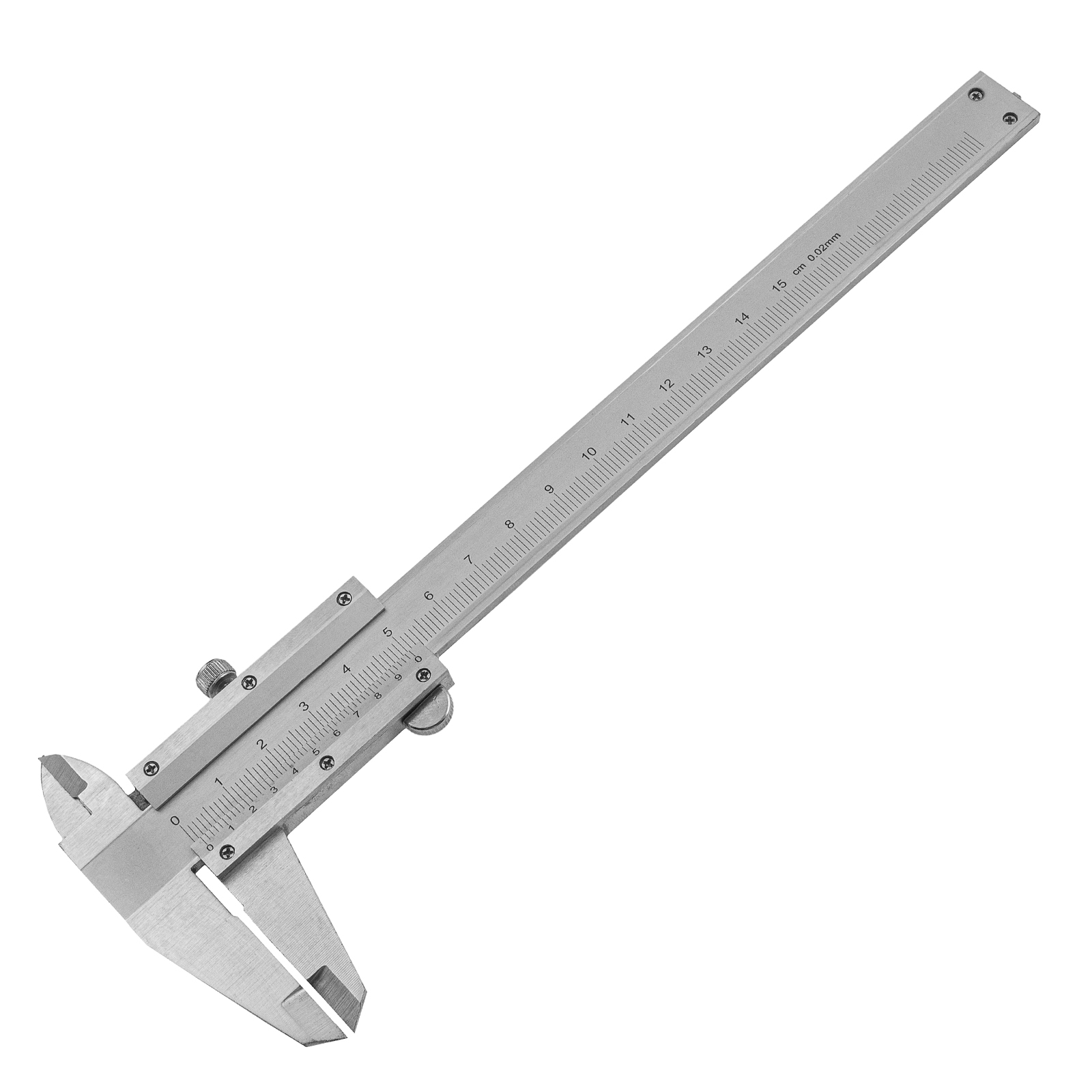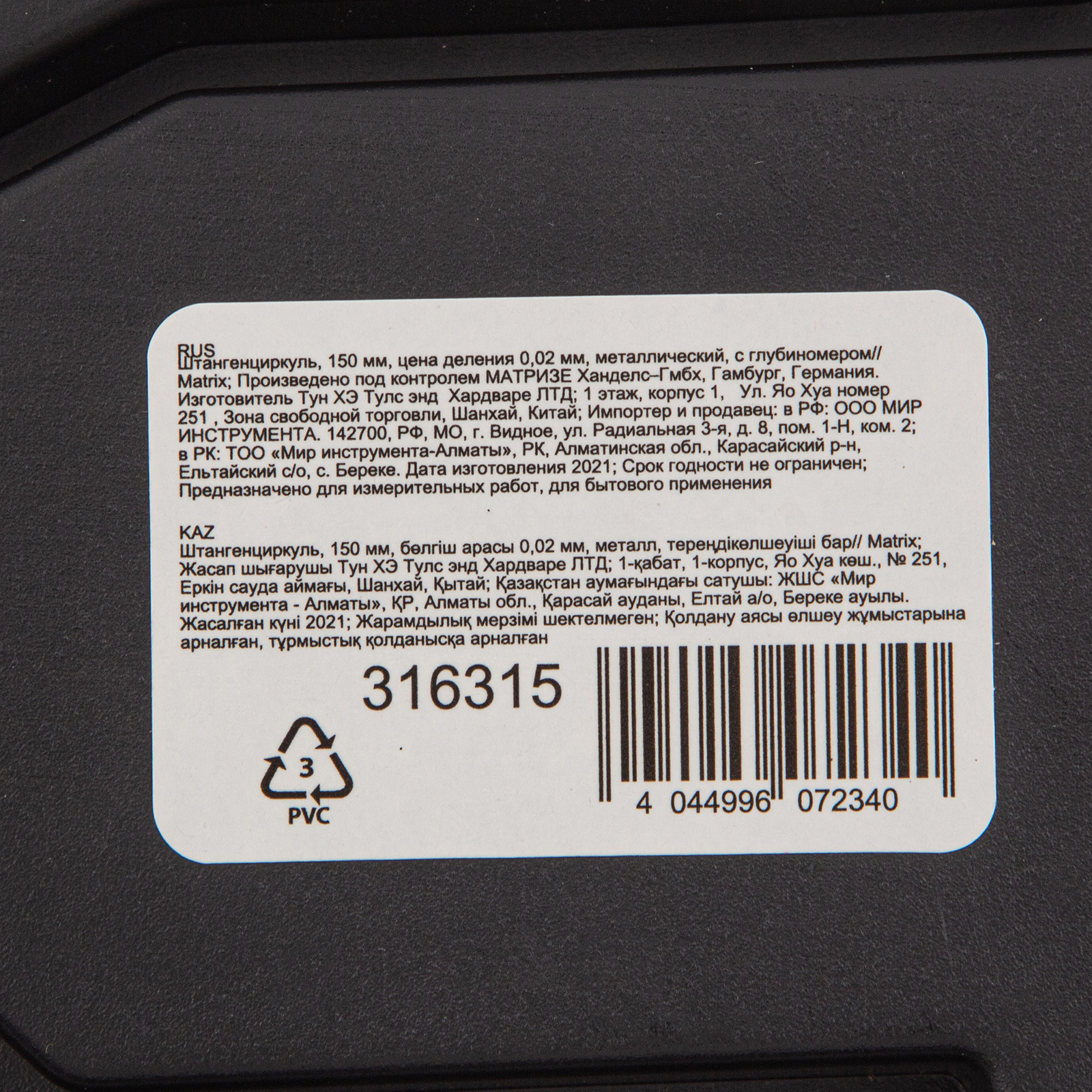 Металлический штангенциркуль с глубиномером Matrix 316315, 150 мм, со значением отсчета по нониусу 0,02 мм, используется для быстрого определения размеров внутри и снаружи деталей, а также глубин отверстий и канавок — для этого предусмотрен глубиномер. Погрешность составляет ±0,02 мм при измерении размеров до 100 мм, и ±0,03 мм — свыше 100 мм. Измерительный инструмент используется в токарном, слесарном деле, будет полезен на производственном предприятии, а также дома или в гараже.