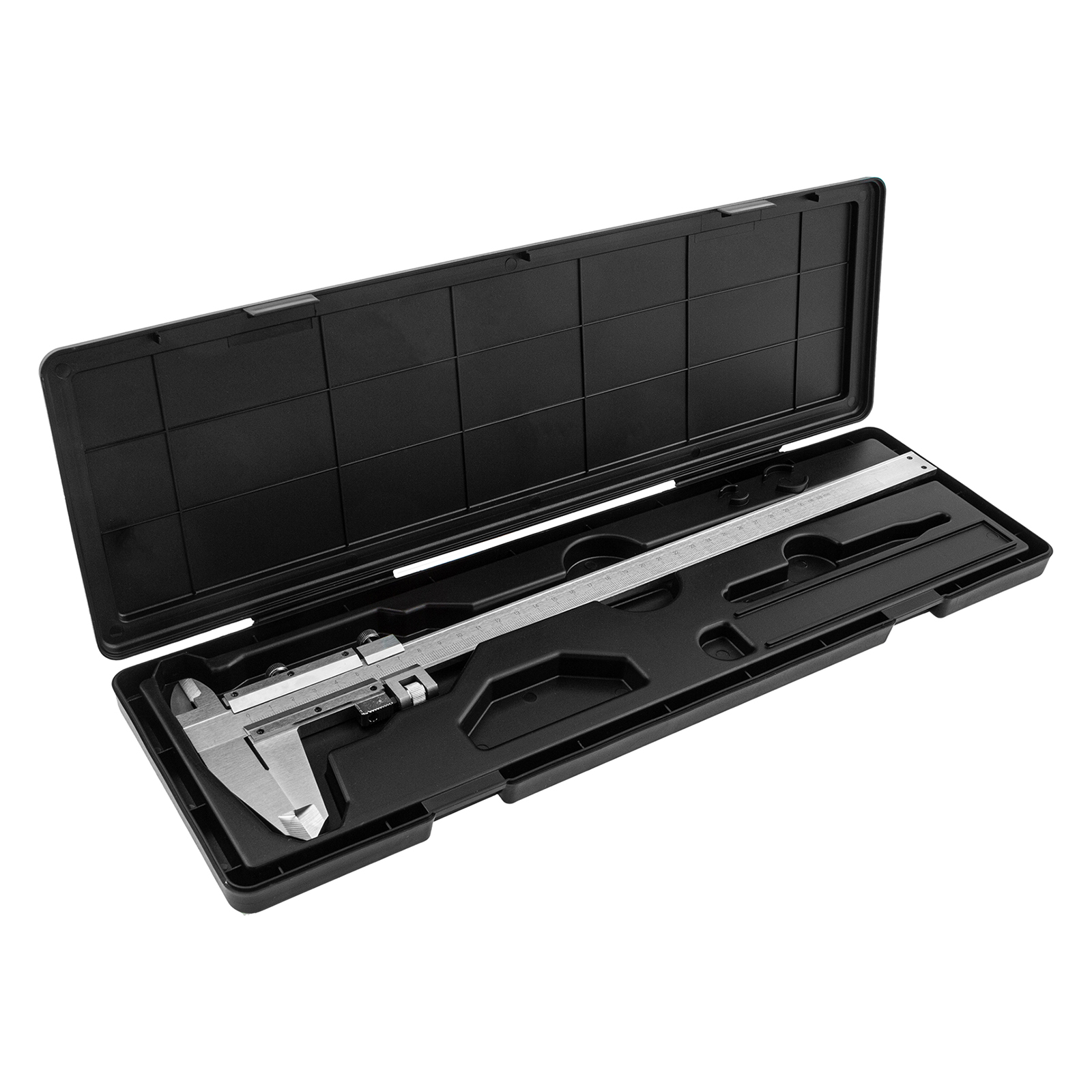 - Удобное хранение и транспортировка — штангенциркуль упакован в прочный пластиковый кейс.