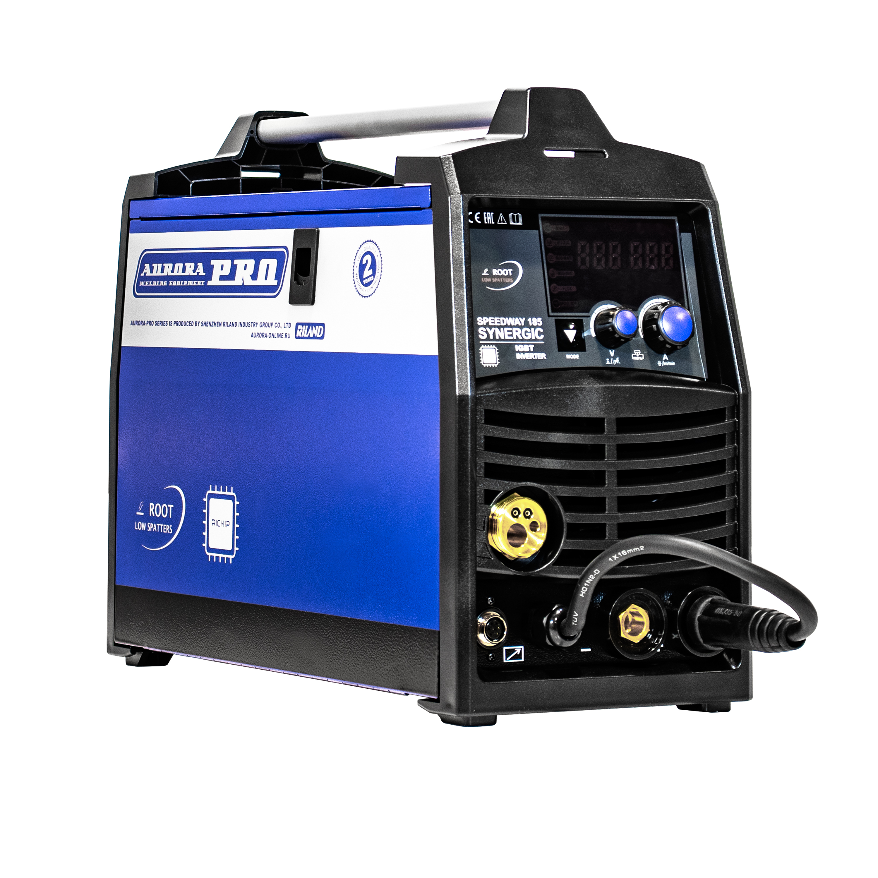 SPEEDWAY 185 SYNERGIC – однофазный полуавтомат из линейки профессиональных инверторов AuroraPRO. Универсальный аппарат для работы с чёрной сталью MIG/MAG, для полуавтоматической сварки порошковой самозащитной проволокой NO GAS, для ручной дуговой сварки штучным электродом MMA, а также для аргонно-дуговой сварки на постоянном токе TIG DC.