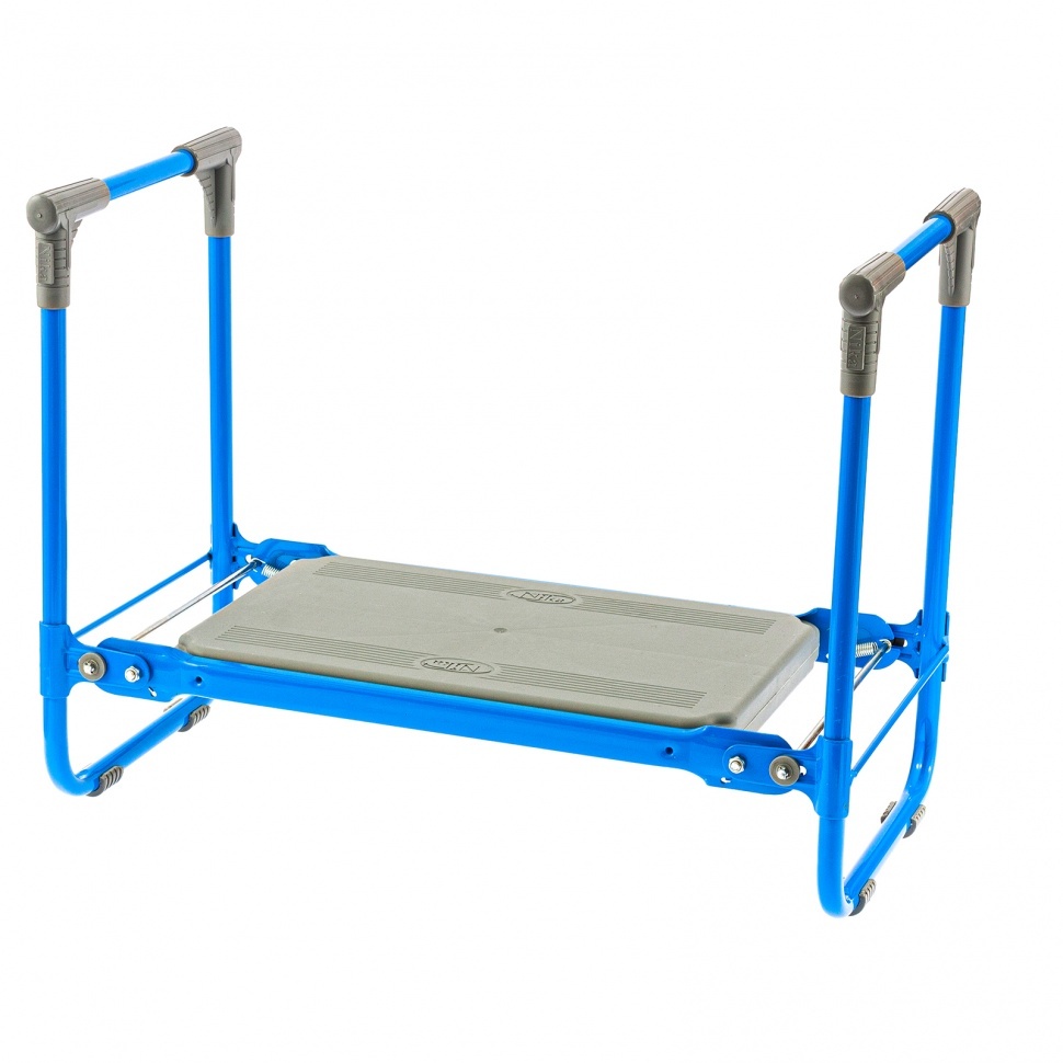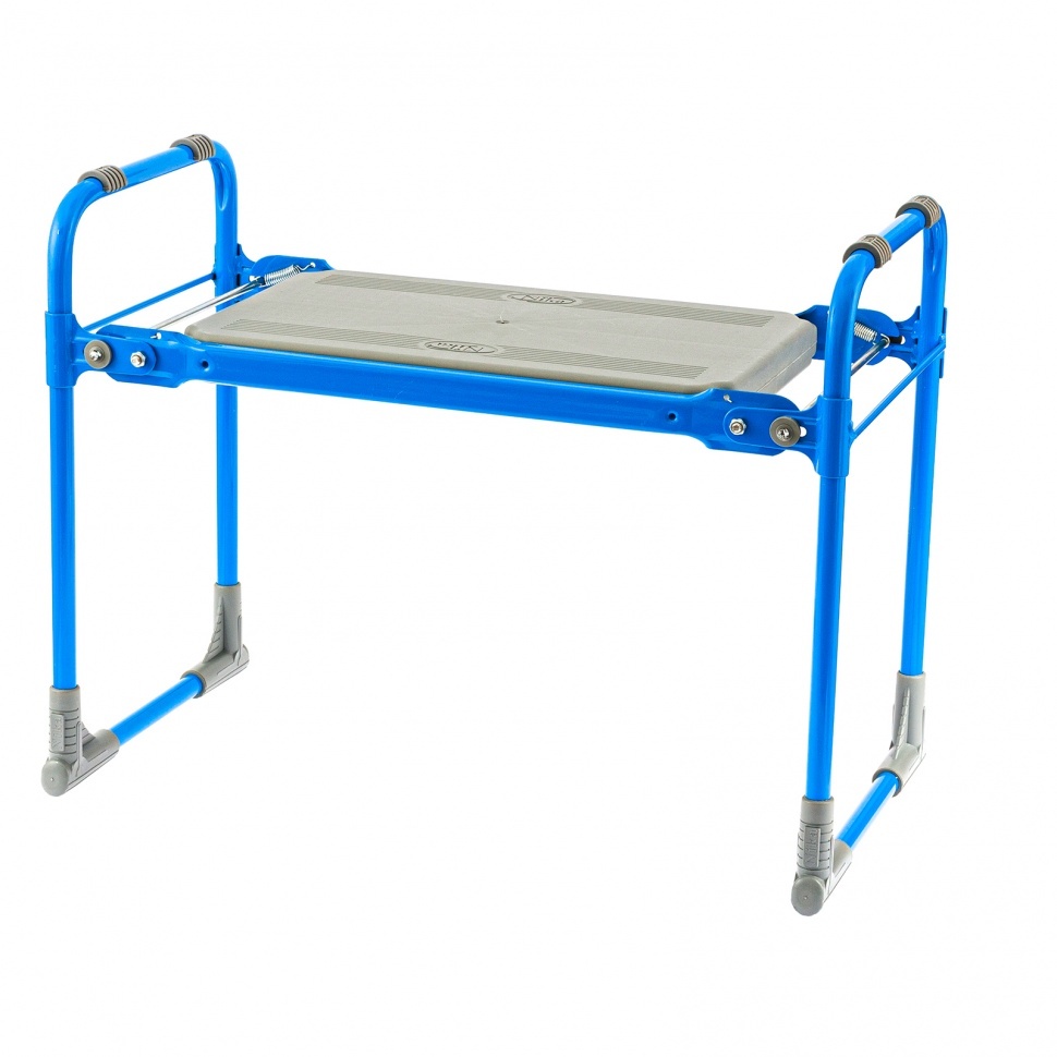 <p>Голубая садовая скамейка Nika 64555 используется для отдыха и удобства работы в саду. В изначальном положении на ней можно сидеть, а если ее перевернуть, то получается небольшая подставка под колени.</p><h2>Преимущества</h2><ul><li>Простая конструкция легко складывается и раскладывается, поэтому скамья подходит пожилым людям.</li><li>Скамейка практична в хранении, т.к. не занимает много места в сложенном виде.</li><li>Лавочка способна выдержать нагрузки до 100 кг.</li><li>Конструкционная прочность каркаса достигается за счет металлических трубок диаметром 16 мм.</li><li>Боковые поручни обеспечивают опору рук, что облегчает эксплуатацию лавочки.</li><li>За счет порошкового покрытия скамейка выдержит любые погодные условия.</li></ul>