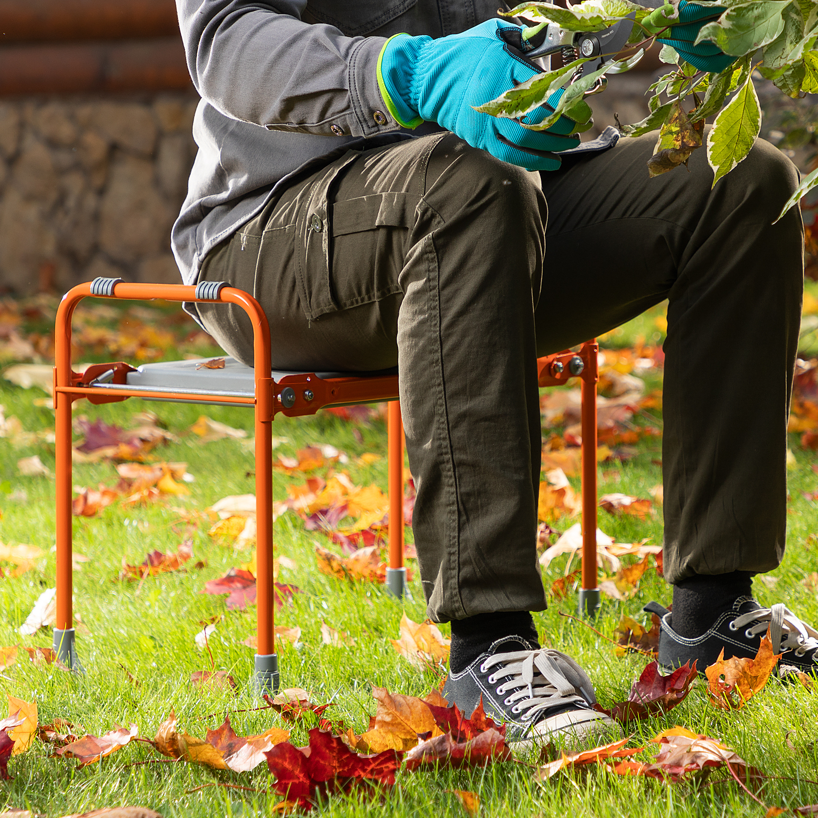 Оранжевая садовая скамейка Nika 64557 используется для отдыха и удобства работы в саду. В изначальном положении на ней можно сидеть, а если ее перевернуть, то получается небольшая подставка под колени.