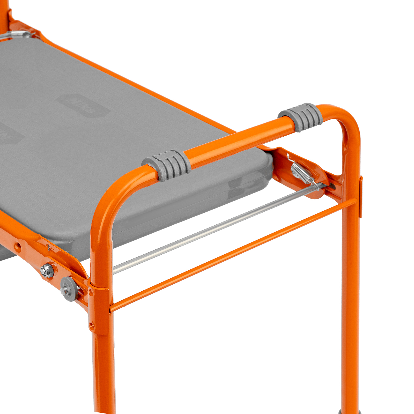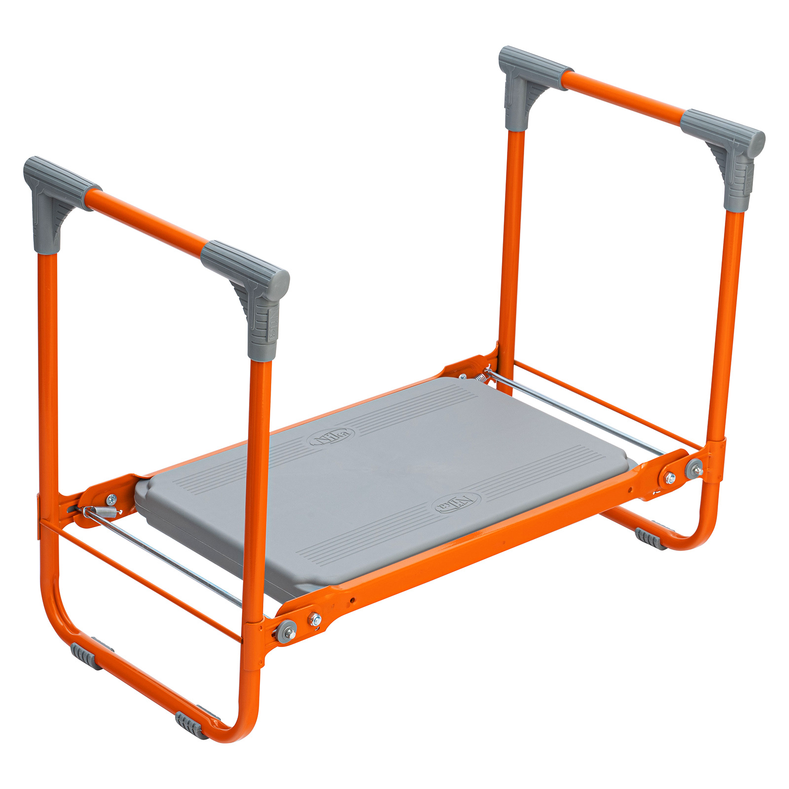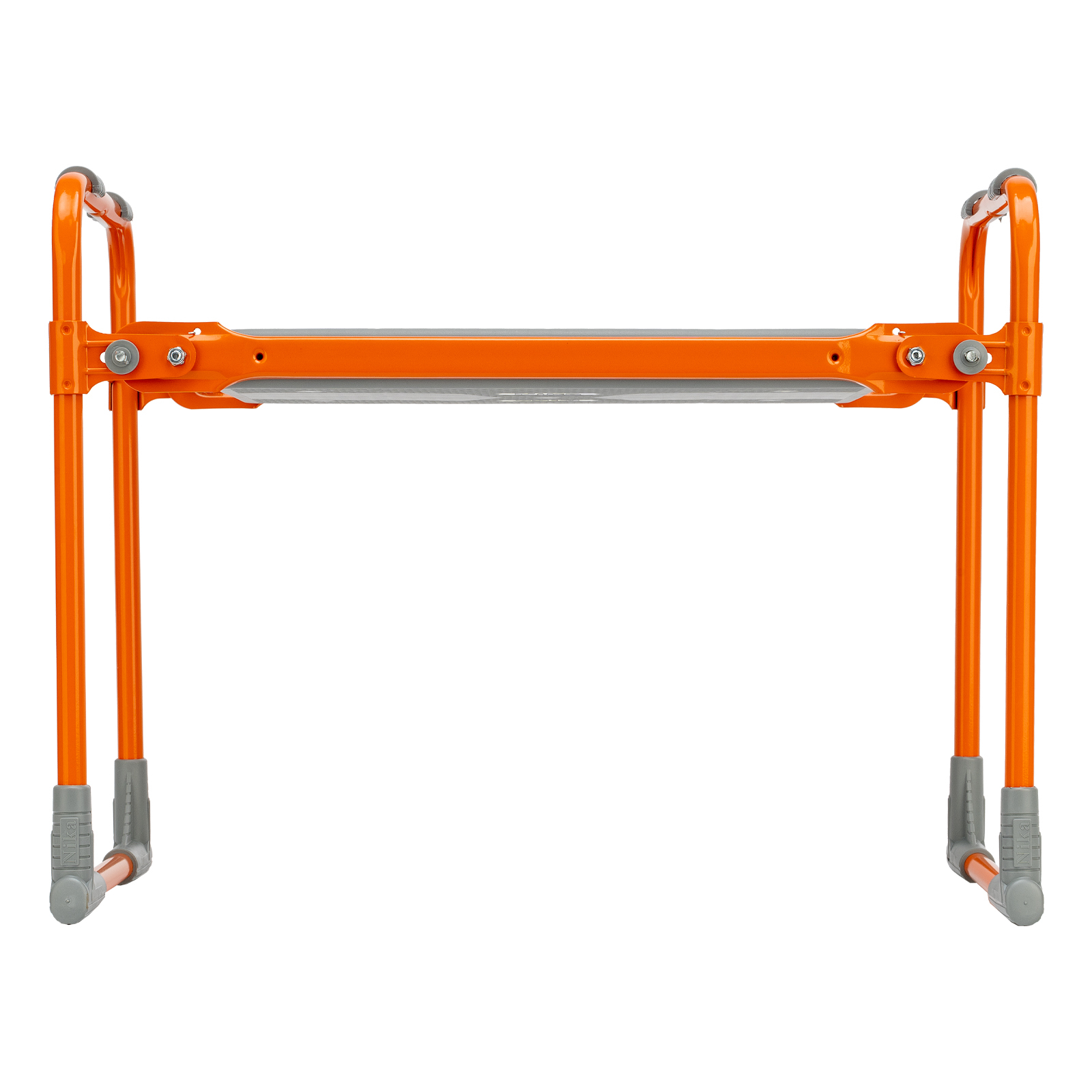 <p>Оранжевая садовая скамейка Nika 64557 используется для отдыха и удобства работы в саду. В изначальном положении на ней можно сидеть, а если ее перевернуть, то получается небольшая подставка под колени.</p><h2>Преимущества</h2><ul><li>Простая конструкция легко складывается и раскладывается, поэтому скамья подходит пожилым людям.</li><li>Скамейка практична в хранении, т.к. не занимает много места в сложенном виде.</li><li>Лавочка способна выдержать нагрузки до 100 кг.</li><li>Конструкционная прочность каркаса достигается за счет металлических трубок диаметром 16 мм.</li><li>Боковые поручни обеспечивают опору рук, что облегчает эксплуатацию лавочки.</li><li>За счет порошкового покрытия скамейка выдержит любые погодные условия.</li></ul>