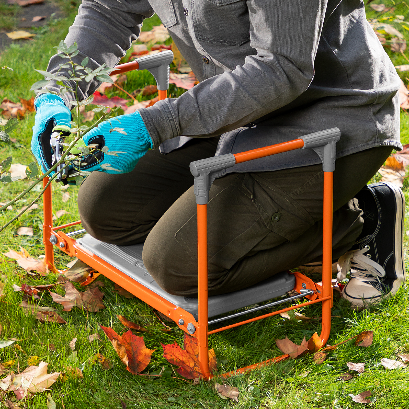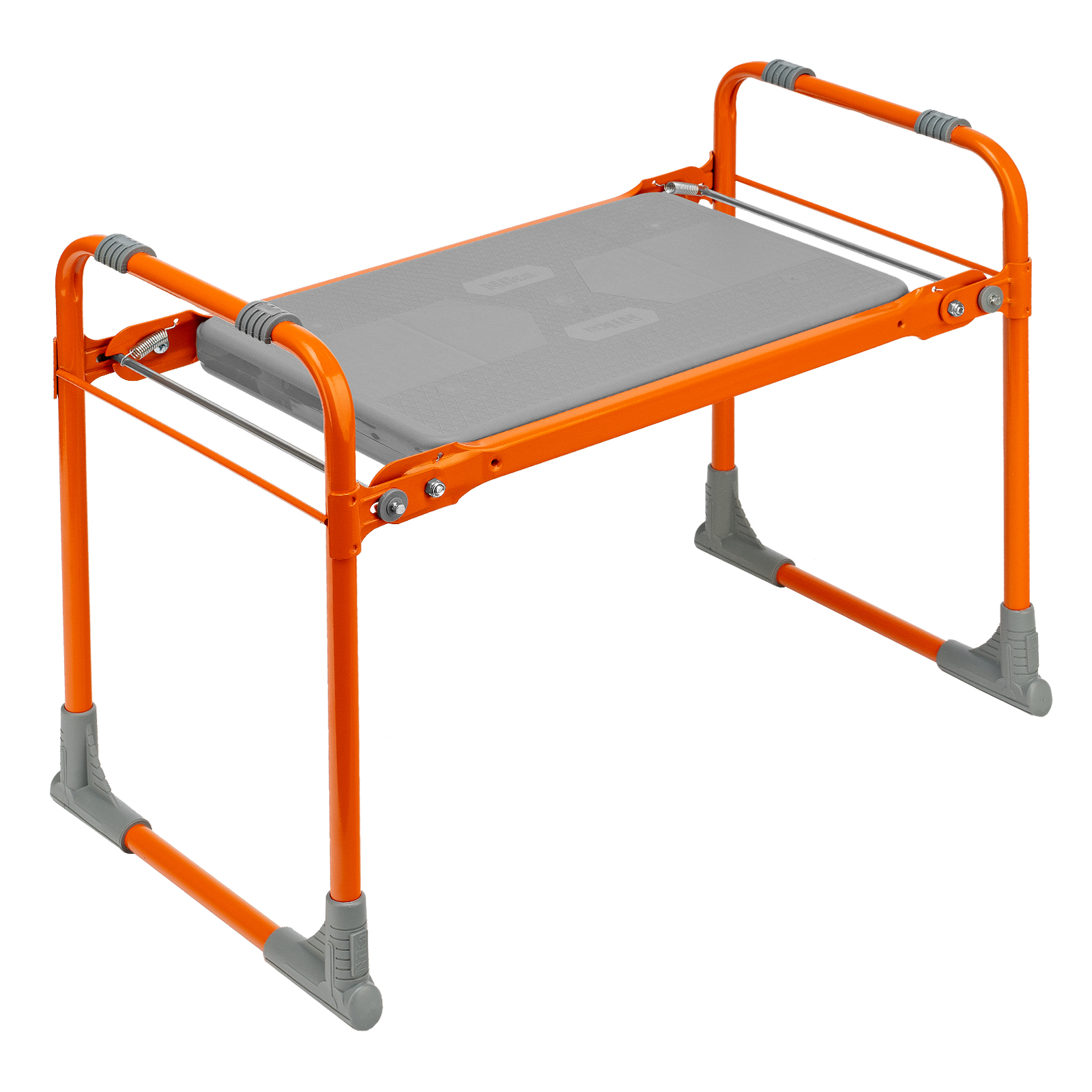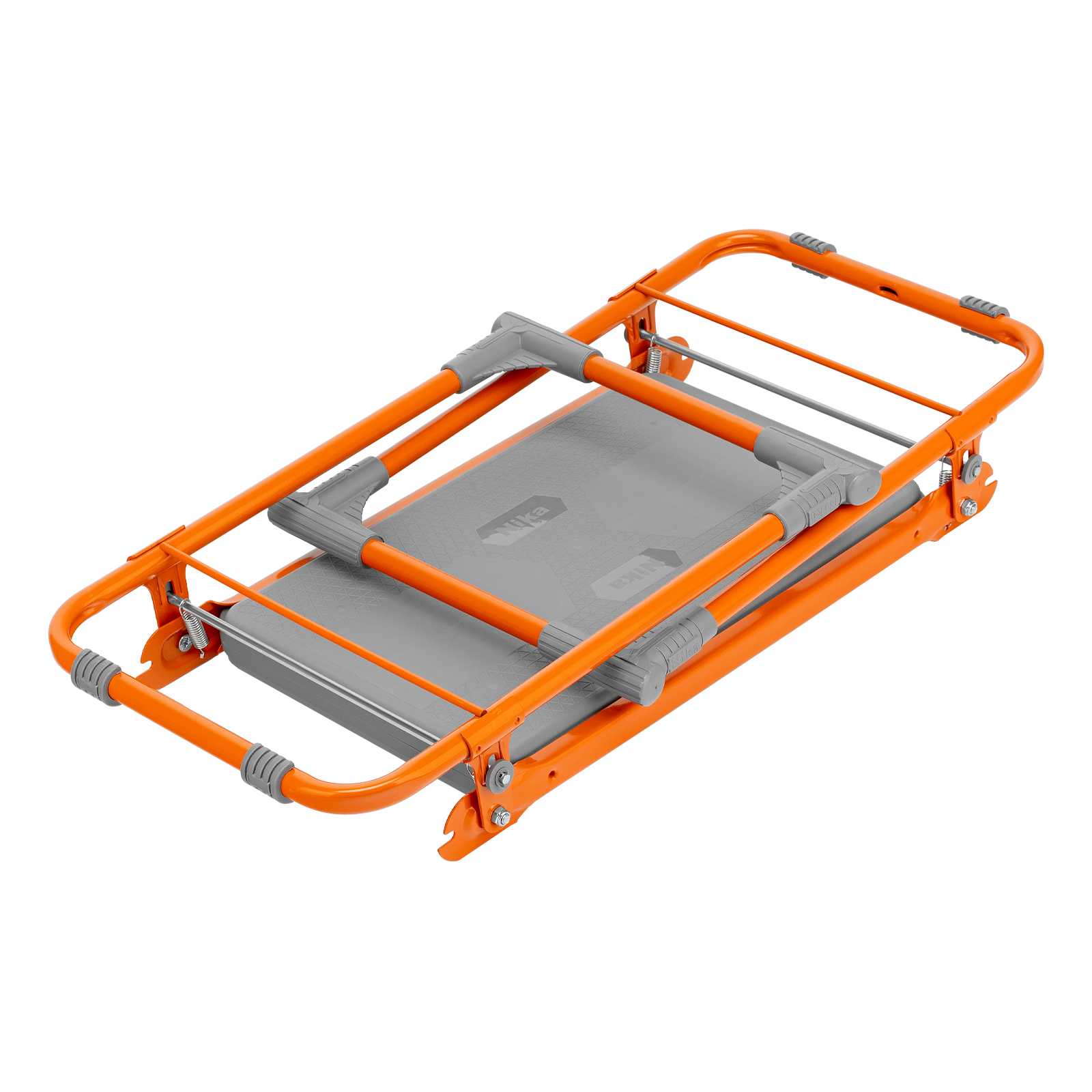 <p>Оранжевая садовая скамейка Nika 64557 используется для отдыха и удобства работы в саду. В изначальном положении на ней можно сидеть, а если ее перевернуть, то получается небольшая подставка под колени.</p><h2>Преимущества</h2><ul><li>Простая конструкция легко складывается и раскладывается, поэтому скамья подходит пожилым людям.</li><li>Скамейка практична в хранении, т.к. не занимает много места в сложенном виде.</li><li>Лавочка способна выдержать нагрузки до 100 кг.</li><li>Конструкционная прочность каркаса достигается за счет металлических трубок диаметром 16 мм.</li><li>Боковые поручни обеспечивают опору рук, что облегчает эксплуатацию лавочки.</li><li>За счет порошкового покрытия скамейка выдержит любые погодные условия.</li></ul>