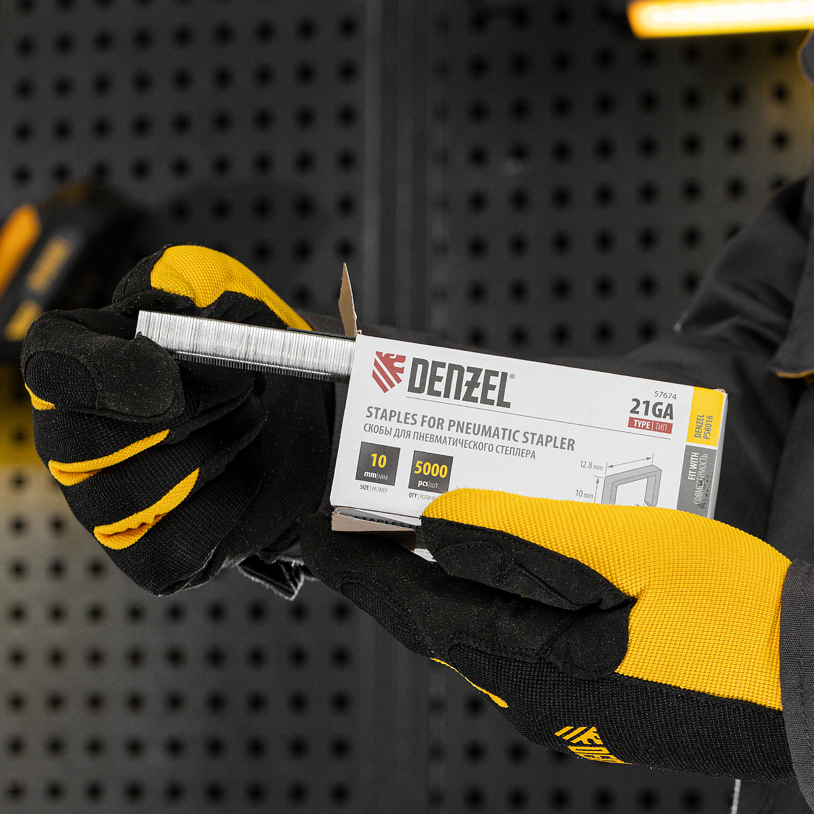 Скобы 21GA для пнев. степл., 10мм, шир. - 0,95мм, тол. - 0,6мм, шир. скобы - 12,8мм, 5000шт Denzel
