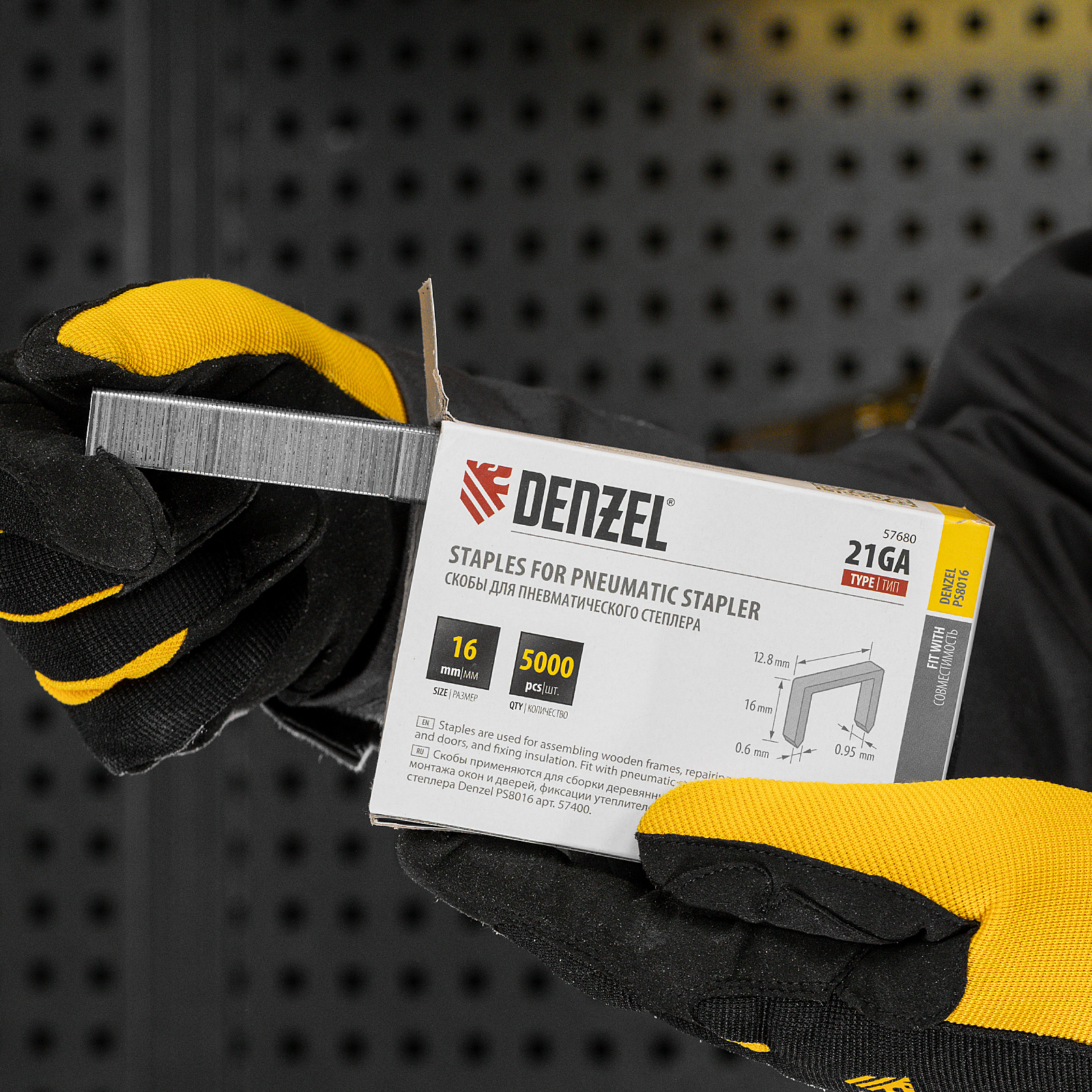 Скобы 21GA для пнев. степл., 16мм, шир. - 0,95мм, тол. - 0,6мм, шир. скобы - 12,8мм, 5000шт Denzel