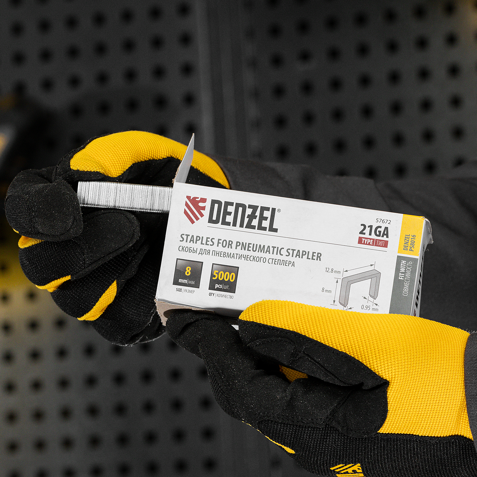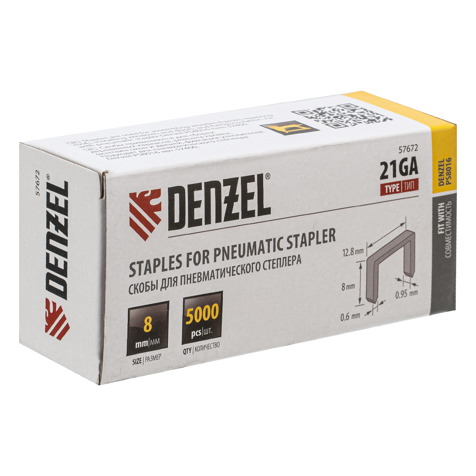 Скобы 21GA для пнев. степл., 8мм, шир. - 0,95мм, тол. - 0,6мм, шир. скобы - 12,8мм, 5000шт Denzel