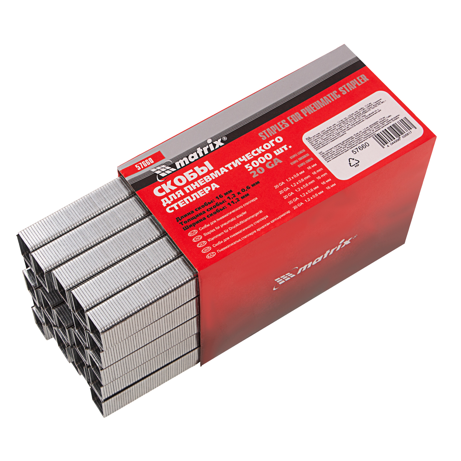 Скобы для пневматического степлера, 16 мм, ширина 1.2 мм, толщина 0.6 мм, ширина скобы 11.2 мм, 5000 шт Matrix