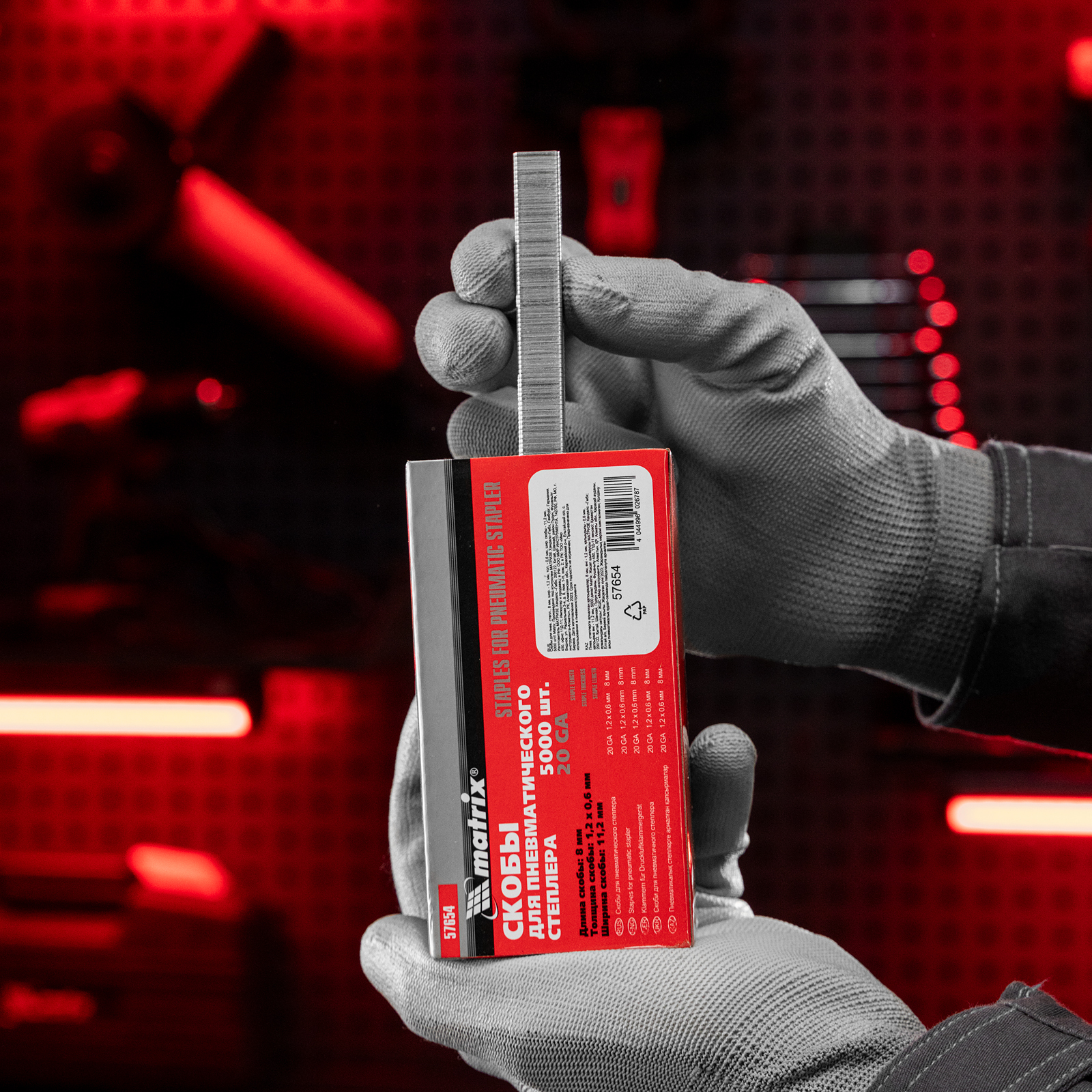 Скобы для пневматического степлера, 8 мм, ширина 1.2 мм, толщина 0.6 мм, ширина скобы 11.2 мм, 5000 шт Matrix