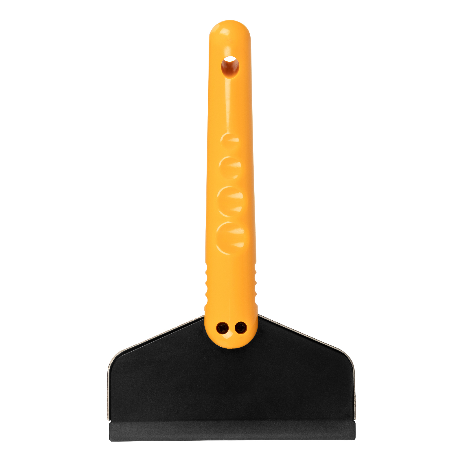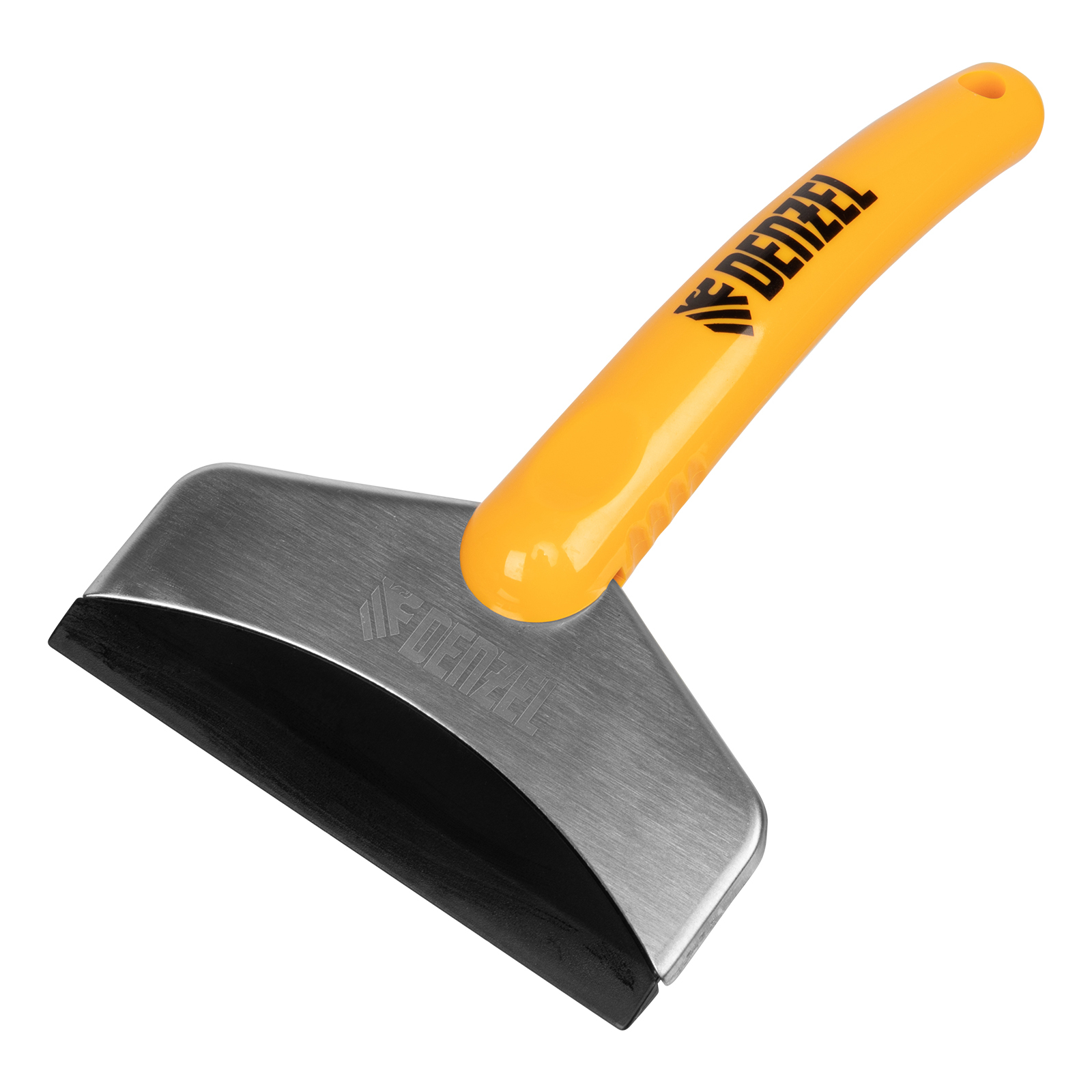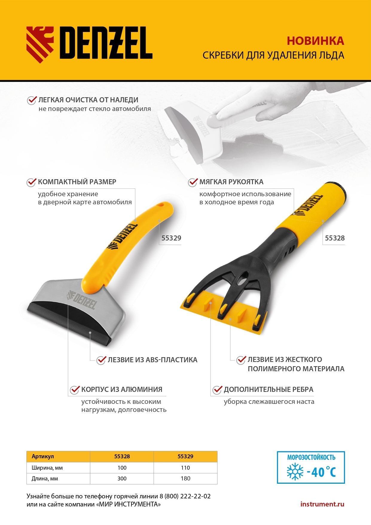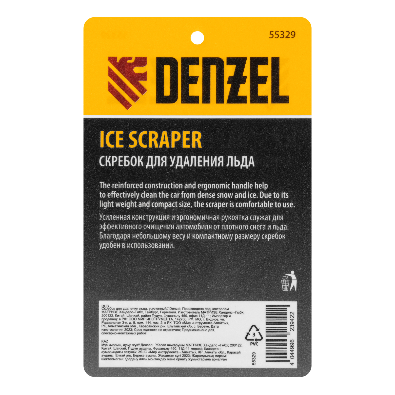 Усиленный скребок для удаления льда Denzel 55329 применяется для очищения зеркал и стекол автомобиля от налипшего и примерзшего снега. За счет небольшого размера 180 х 110 мм скребок удобно хранить в салоне автомобиля.