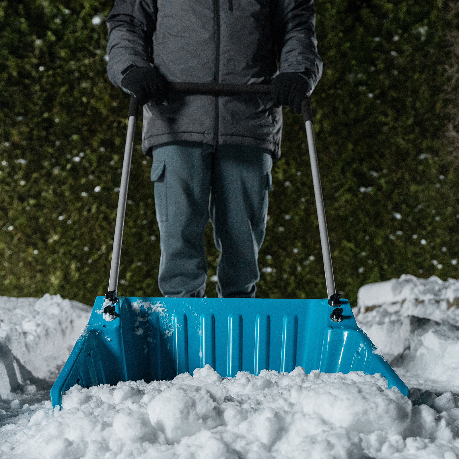 Скрепер-волокуша для уборки снега, полипропилен, колеса, 595х715х1445мм, рукоятка с ПВХ, LUXE Palisad