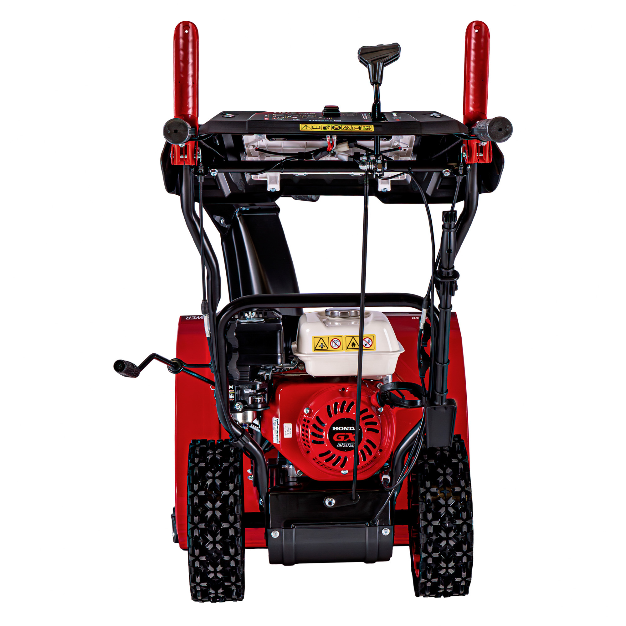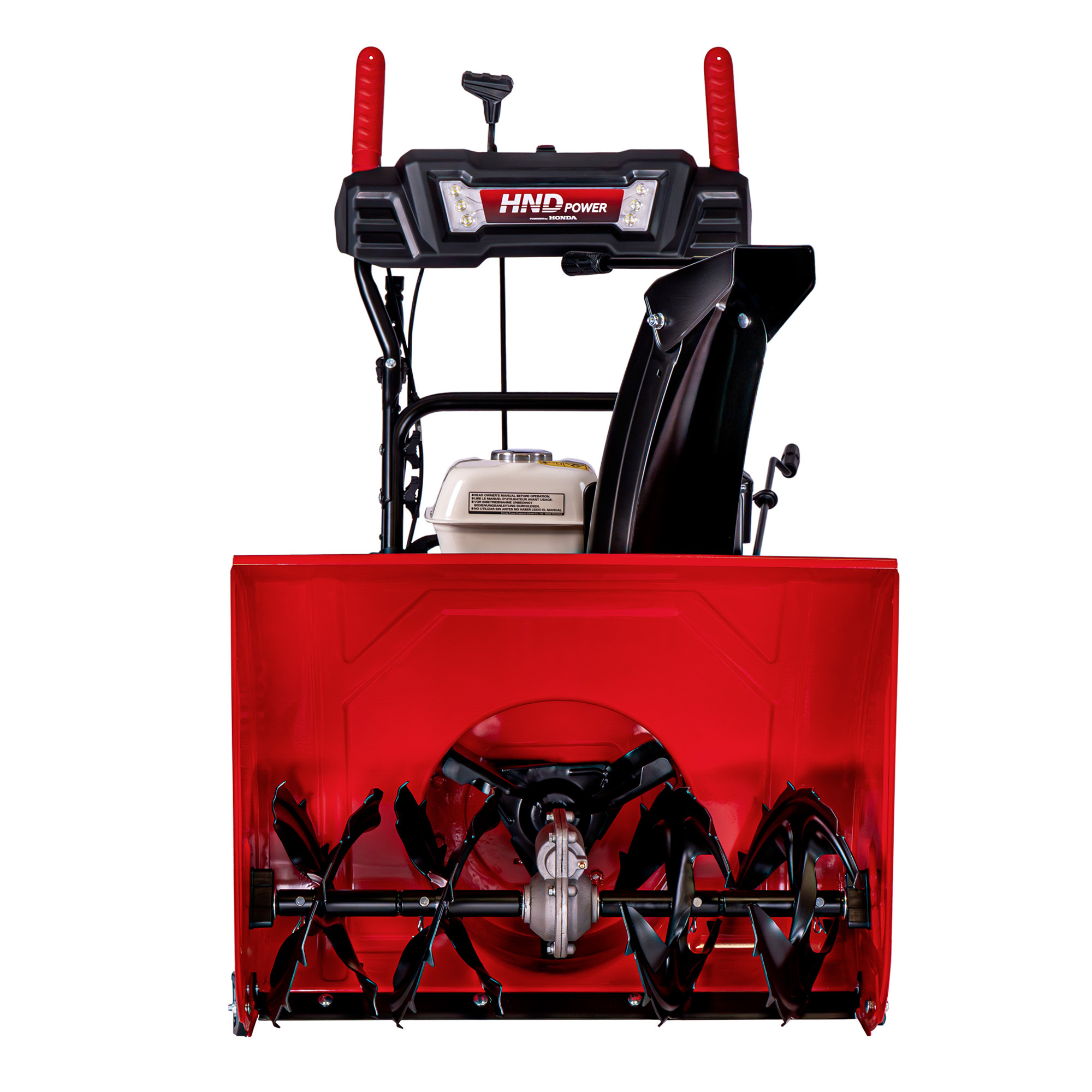 Ширина расчистки составляет 26 дюймов (66 см), а высота расчистки - 20,5 дюйма (52 см), что позволяет эффективно справляться с большими объемами снега. Диаметр шнека - 10 дюймов (25 см), а диаметр крыльчатки - 11,4 дюйма (29 см), обеспечивая быстрый и мощный выброс снега. Для вашего комфорта снегоуборщик оснащен обогреваемыми ручками и светодиодным головным светом. Боковой рычаг управления поворотом желоба выброса снега и регулировка угла наклона желоба позволяют точно контролировать направление и высоту выброса снега.