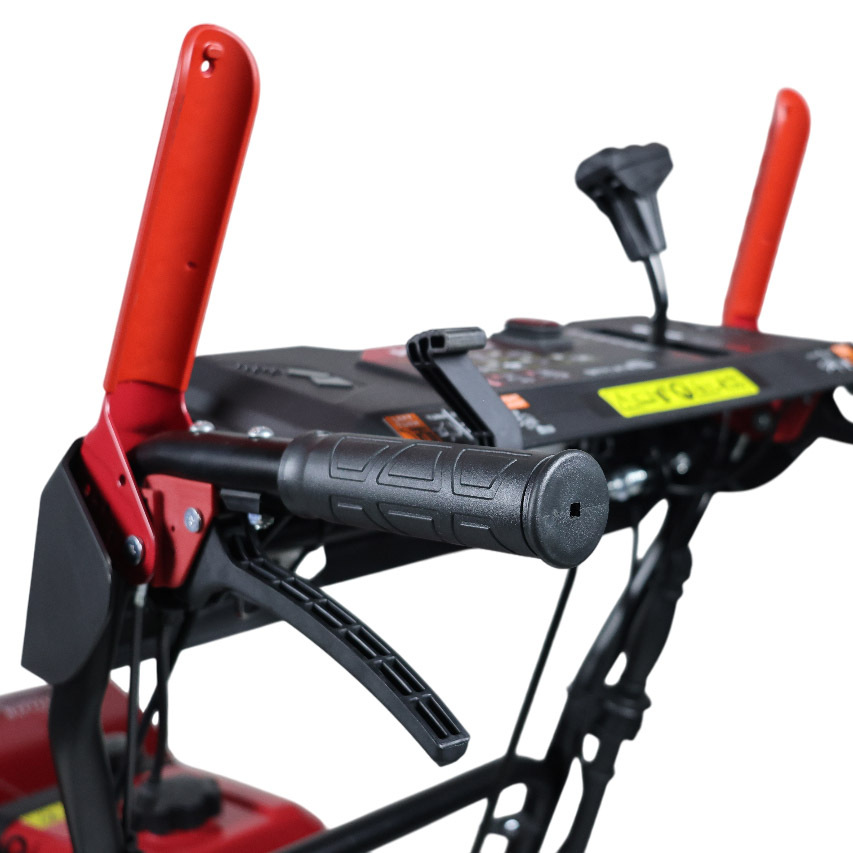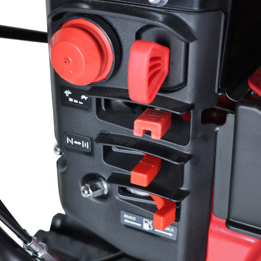 Двухступенчатая система выброса обеспечивает эффективный сбор и отброс снега на большое расстояние. Обогрев рукояток и фара создают комфортные условия . Шесть передач вперед и две назад (на панели управления) дают оптимальный режим работы.