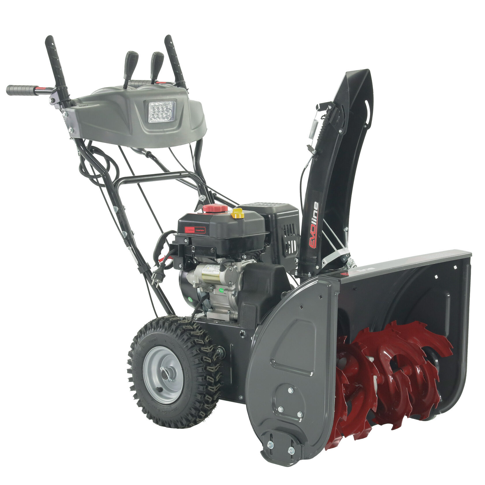 Модель EVOline SBG620E имеет богатую стандартную комплектацию: LED-фару, подогрев рукояток управления, легкий запуск двигателя от розетки 220В, а также оснащен такими функциями, как: ручная разблокировка одного из колёс с помощью шплинта на оси колеса.