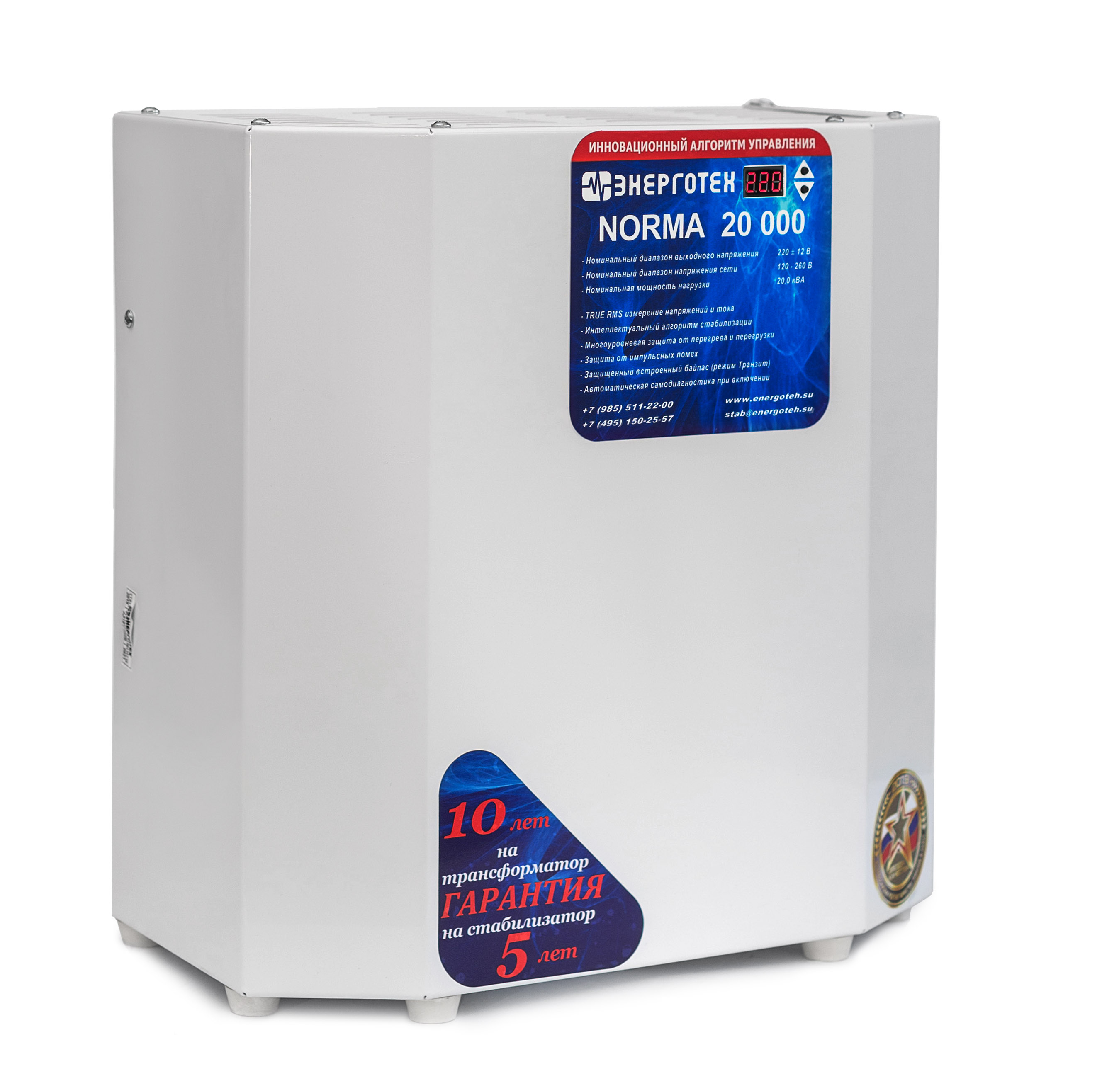 NORMA является начальной серией стабилизатор напряжения Энерготех. Она представлена бюджетными электронными тиристорными стабилизаторами с точностью стабилизации 5,7%, используются 9 ступеней. Эта серия работает при входном напряжении 105-265 В. Серия Норма может работать в неотапливаемом помещении при температуре от -25 до +45 °С. В комплекте идет специальная планка для размещения стабилизатора напряжения на стене. Снизу расположены автоматический выключатель и ручной сервисный байпас.