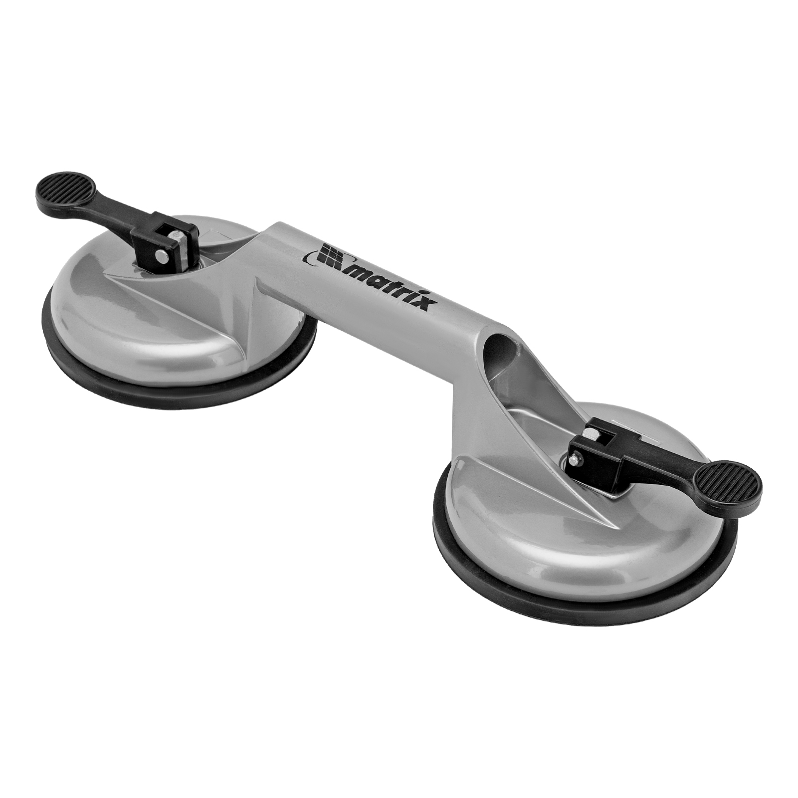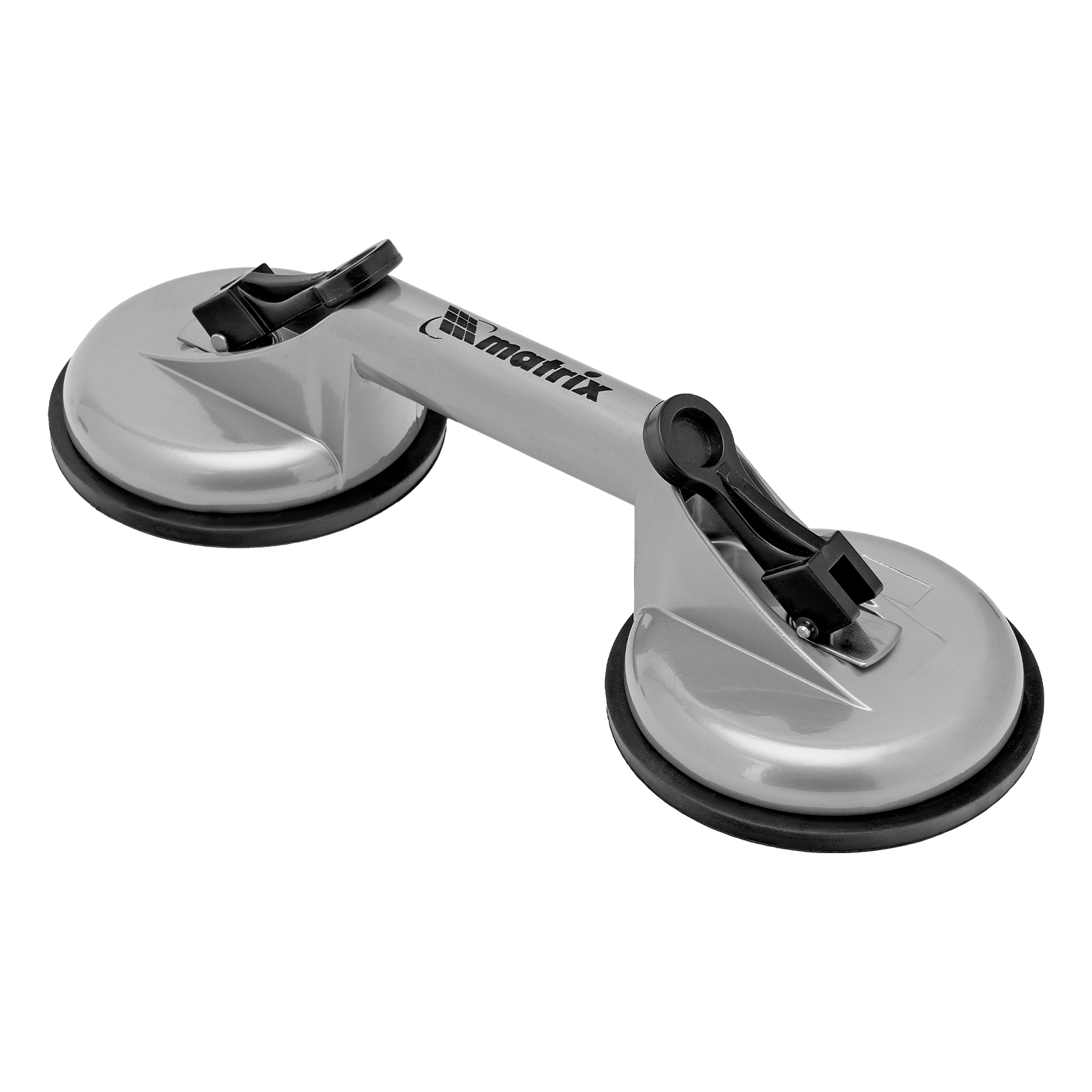 <p>Алюминиевый двойной стеклодомкрат Matrix 875205 позволяет поднимать, переносить и устанавливать стекла, зеркала, плитку, листовой металл и другие гладкие материалы. Имеет две вакуумные присоски, которые бережно и надежно фиксируются на поверхности при помощи зажимов. Стеклодомкрат позволяет длительное время удерживать груз весом до 80 кг. Будет полезен во время строительства, ремонта, а также пригодится в быту.</p><h2>Преимущества</h2><ul><li>Прочность — корпус изготовлен из алюминиевого сплава.</li><li>Долговечность — стеклодомкрат устойчив к коррозии.</li><li>Эргономичность — удобная рукоятка помогает удерживать груз.</li></ul>