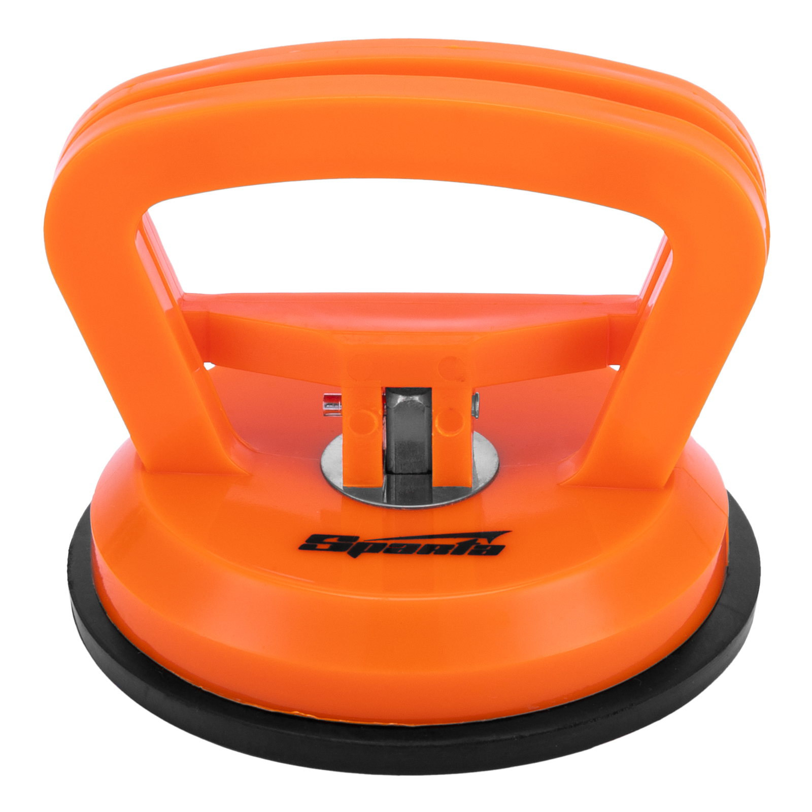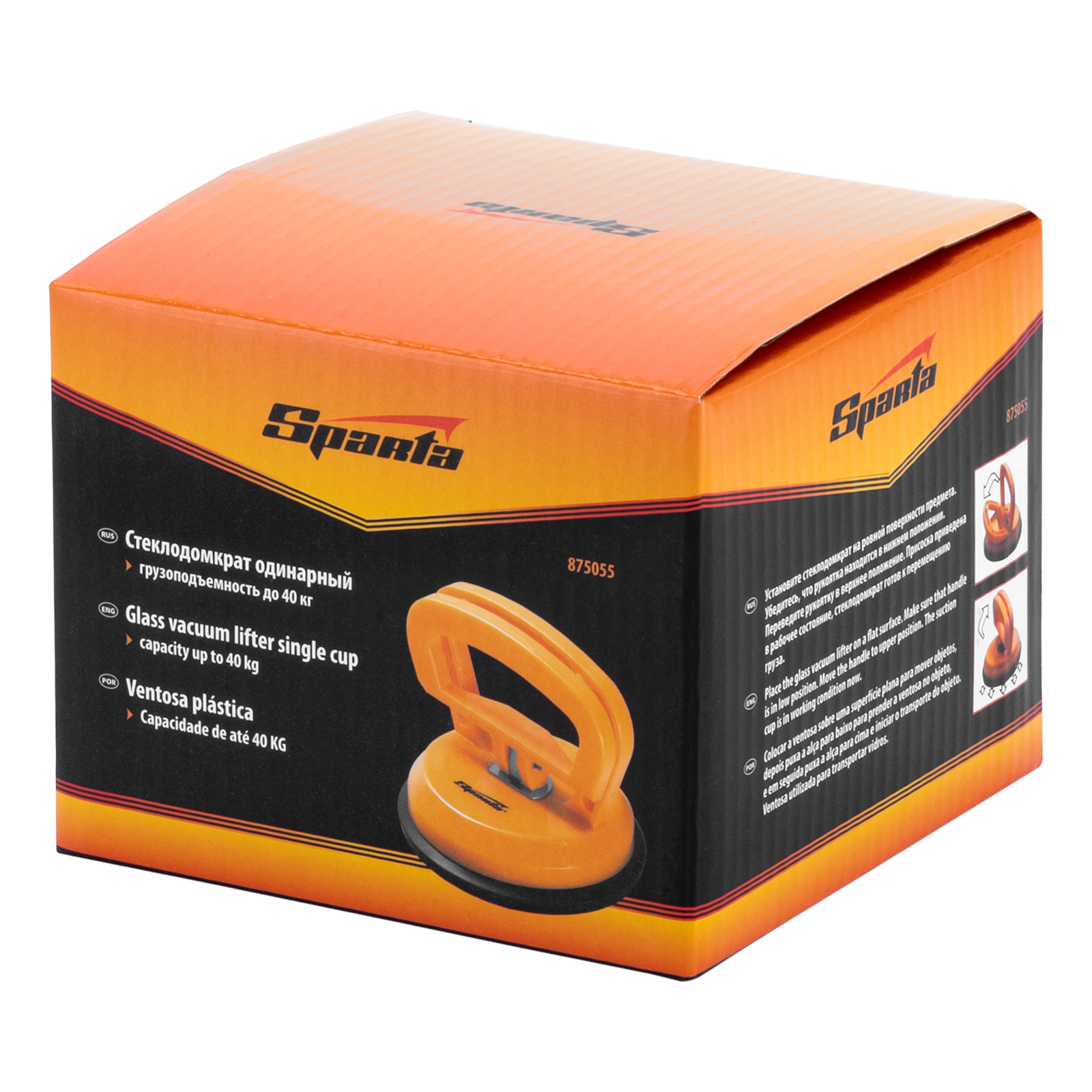 <p>Одинарный стеклодомкрат Sparta 875055 служит для захвата, удержания и перемещения стекол, зеркал, кафельной плитки и других плоских гладких предметов весом до 40 кг. Имеет вакуумную присоску, которая после складывания рукоятки бережно прижимается к чистой сухой поверхности и прочно фиксируется на ней. Инструмент пригодится во время проведения ремонтных и отделочных работ.</p><h2>Преимущества</h2><ul><li>Прочность и долговечность — корпус из противоударного пластика устойчив к механическим повреждениям и прослужит долго.</li><li>Надежная фиксация присоски — стеклодомкрат подходит для длительного удерживания предметов.</li><li>Удобная эксплуатация — производитель предусмотрел эргономичные рукоятки.</li></ul>