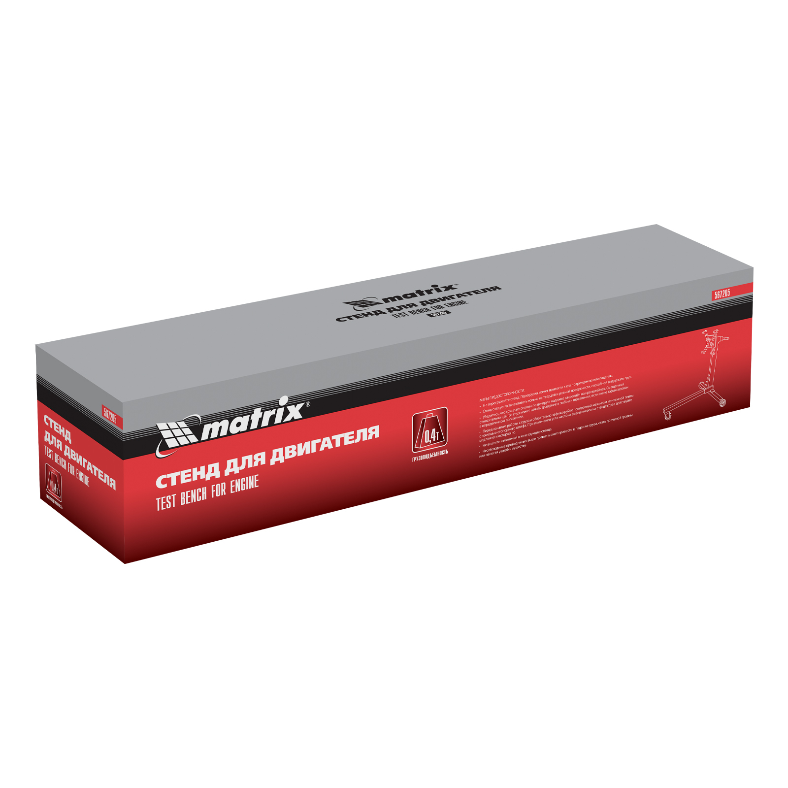 <p>Стенд Matrix 567205 грузоподъемностью 400 кг (1000 Lbs) используется в автомастерских для осуществления ремонта и диагностики двигателя и его транспортировки внутри помещения. Благодаря конструкции с кронштейнами и регулируемыми захватами стенд-кантователь можно использовать для вывешивания практически любых двигателей массой до 400 кг. Для повышения безопасности работы рекомендуется использовать стенд со стойкой и краном.</p><h2>Преимущества</h2><ul><li>Прочность и долговечность конструкции стенда достигается за счет металлического корпуса.</li><li>Благодаря поворотному механизму можно вращать стенд на 360° для доступа ко всем частям двигателя.</li><li>Стенд оснащен широкими поворотными колесами, с помощью которых его удобно перемещать по рабочей площадке.</li></ul>