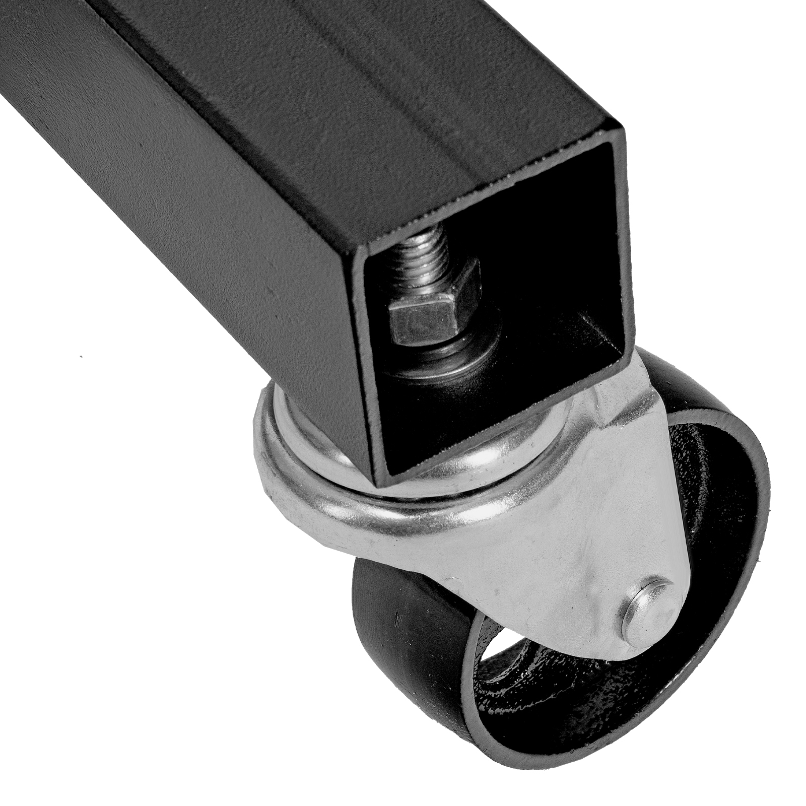 - Стенд оснащен широкими поворотными колесами, с помощью которых его удобно перемещать по рабочей площадке.