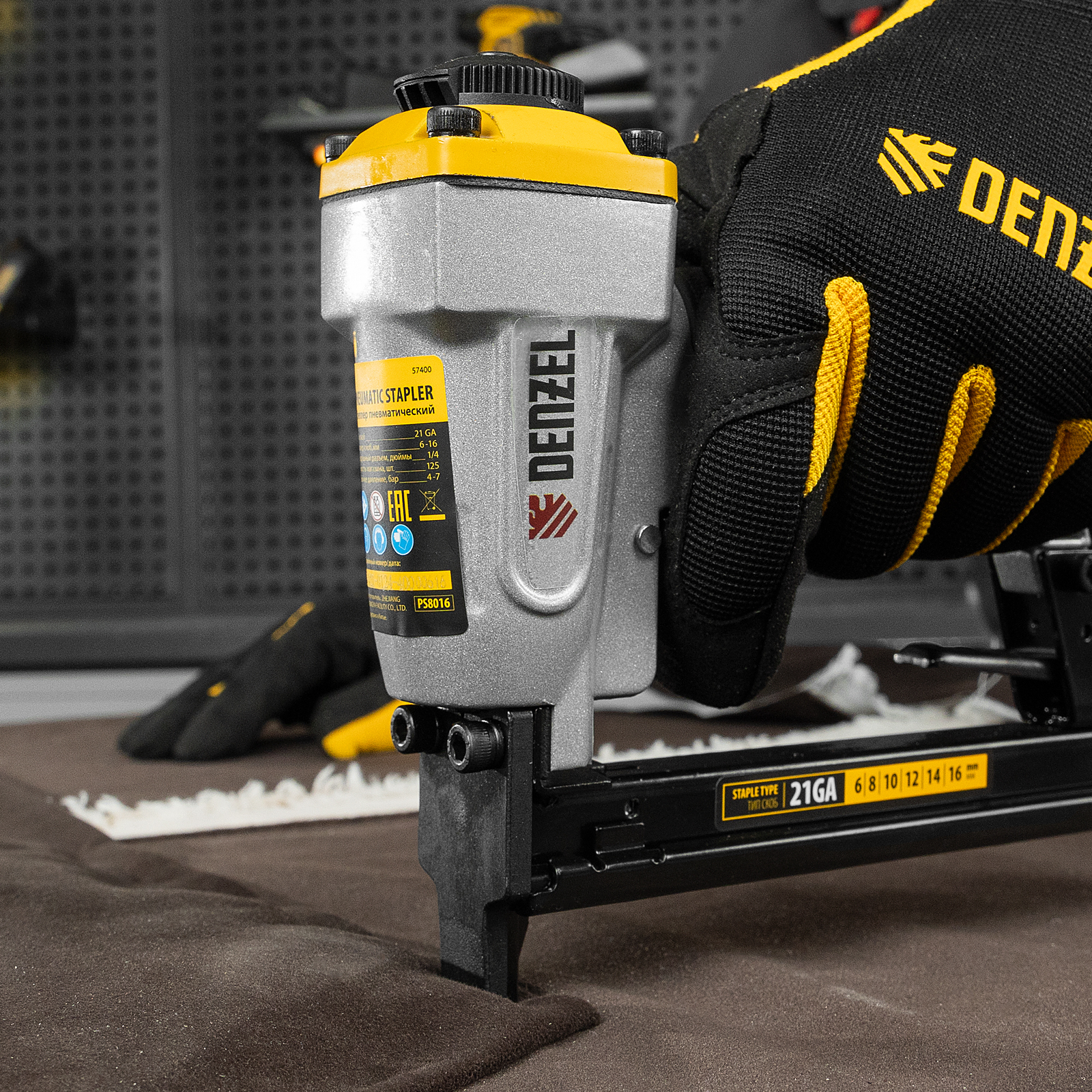 Степлер пневматический PS8016 для прямоугольных скоб 21GA от 6 до 16 мм Denzel