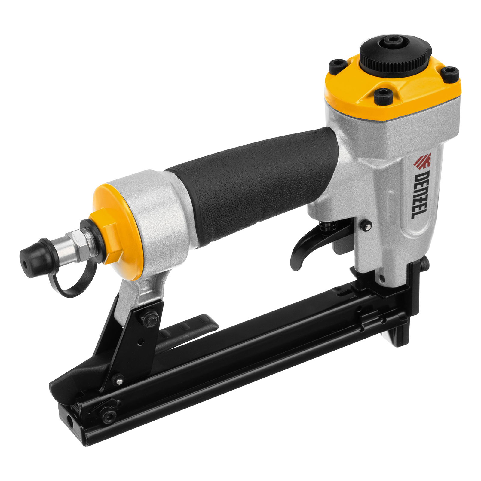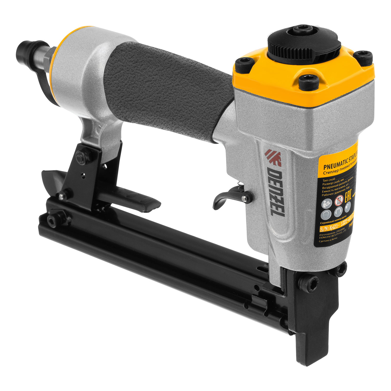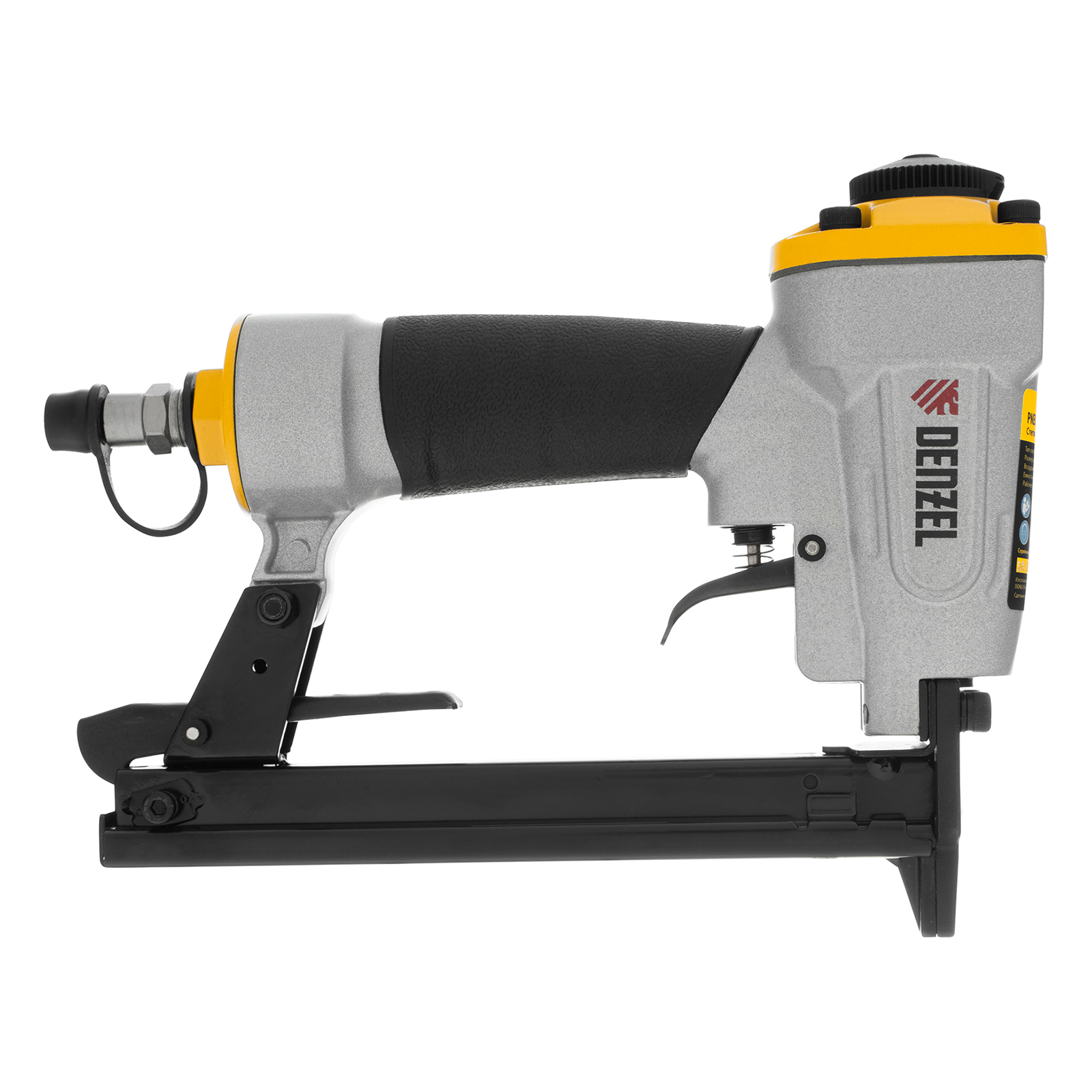 Пневматический степлер Denzel PS8016 57400 предназначен для крепления к основанию листовых материалов при помощи прямоугольных скоб 21GA размером 6-16 мм. Подходит для закрепления фанеры, оргалита, ДСП, обивочной ткани. Незаменим во время отделочных работ и производства мебели.
