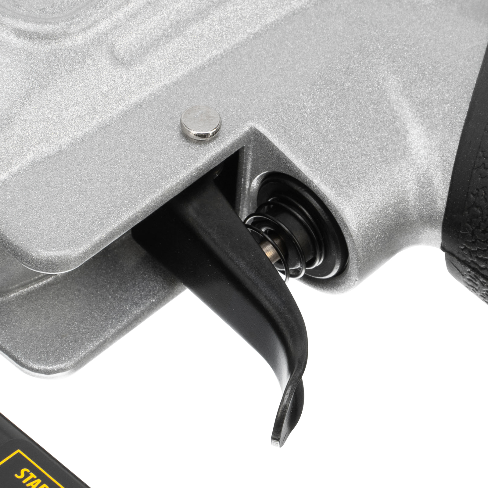 - Бесперебойная работа — магазин вмещает 125 скоб, что позволяет сократить частоту перезарядки.