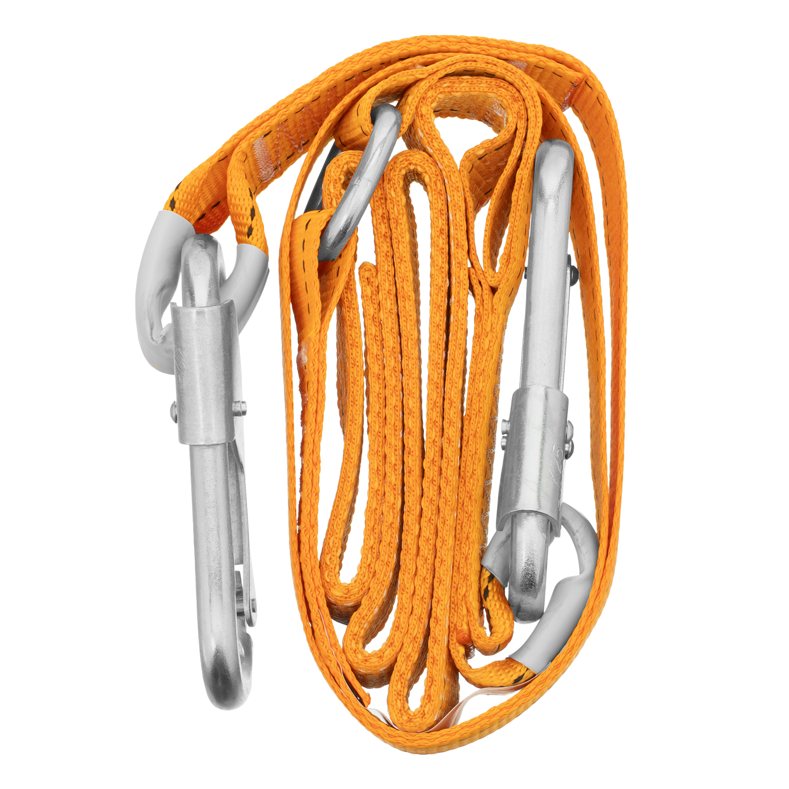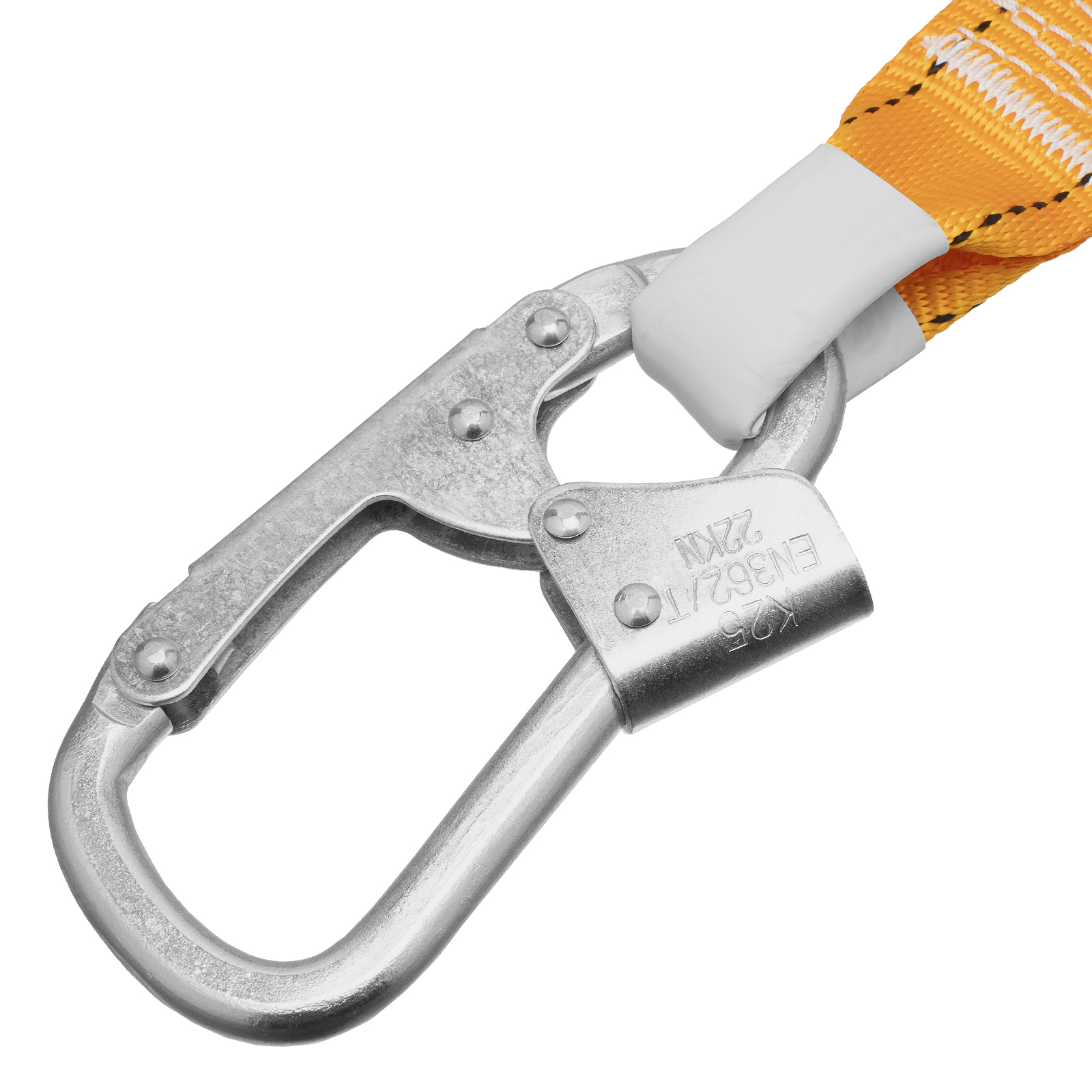 Ленточный нерегулируемый строп Сибртех 89509, модель «аА» с амортизатором, предназначен для соединения удерживающей (страховочной) привязи с анкерной точкой крепления. Применятся в ходе строительных, монтажных кровельных и других операций, когда необходимо обеспечить безопасность работника. Применение без страховочно-удерживающей привязи недопустимо.