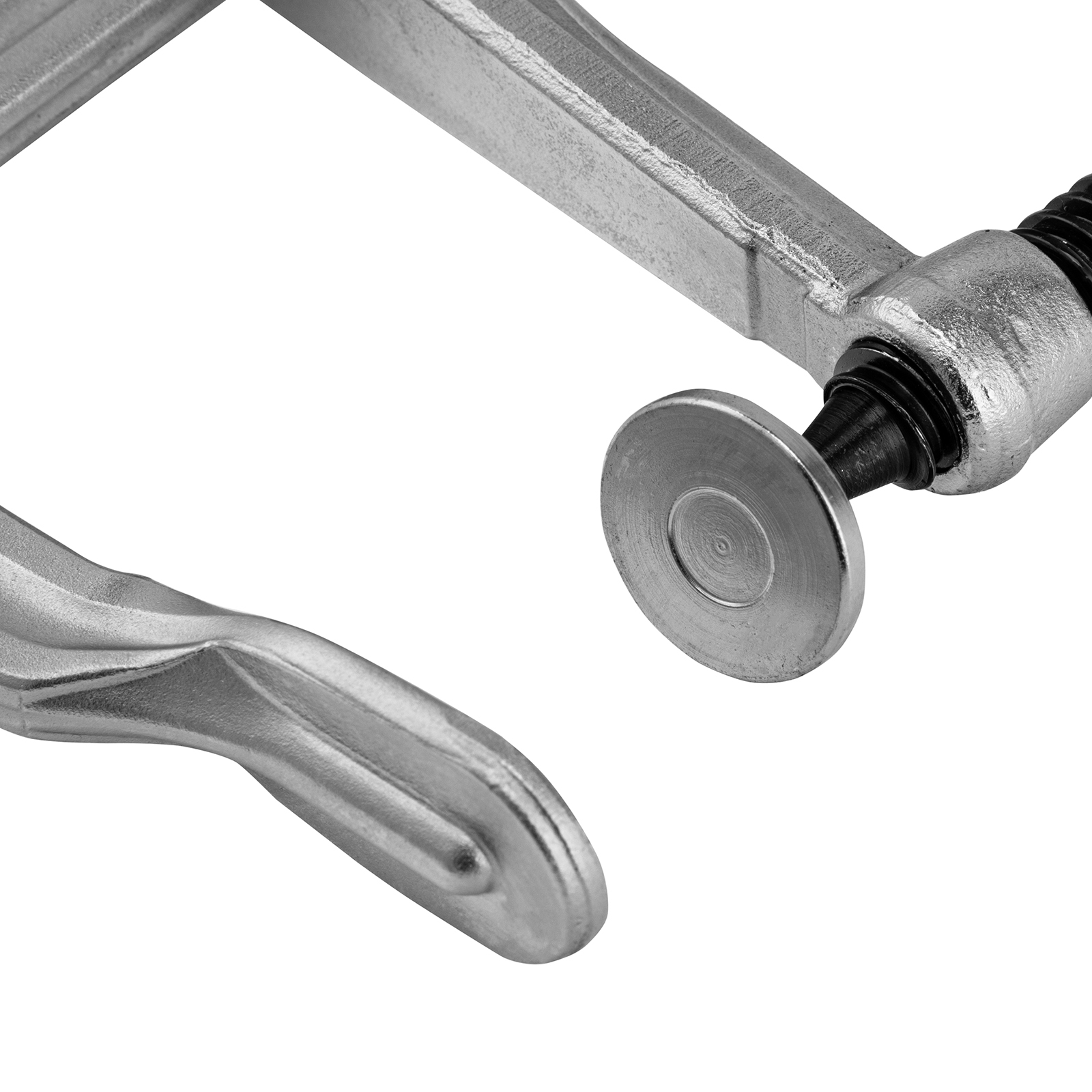 - Хромированное покрытие надежно защищает струбцину от коррозии.
