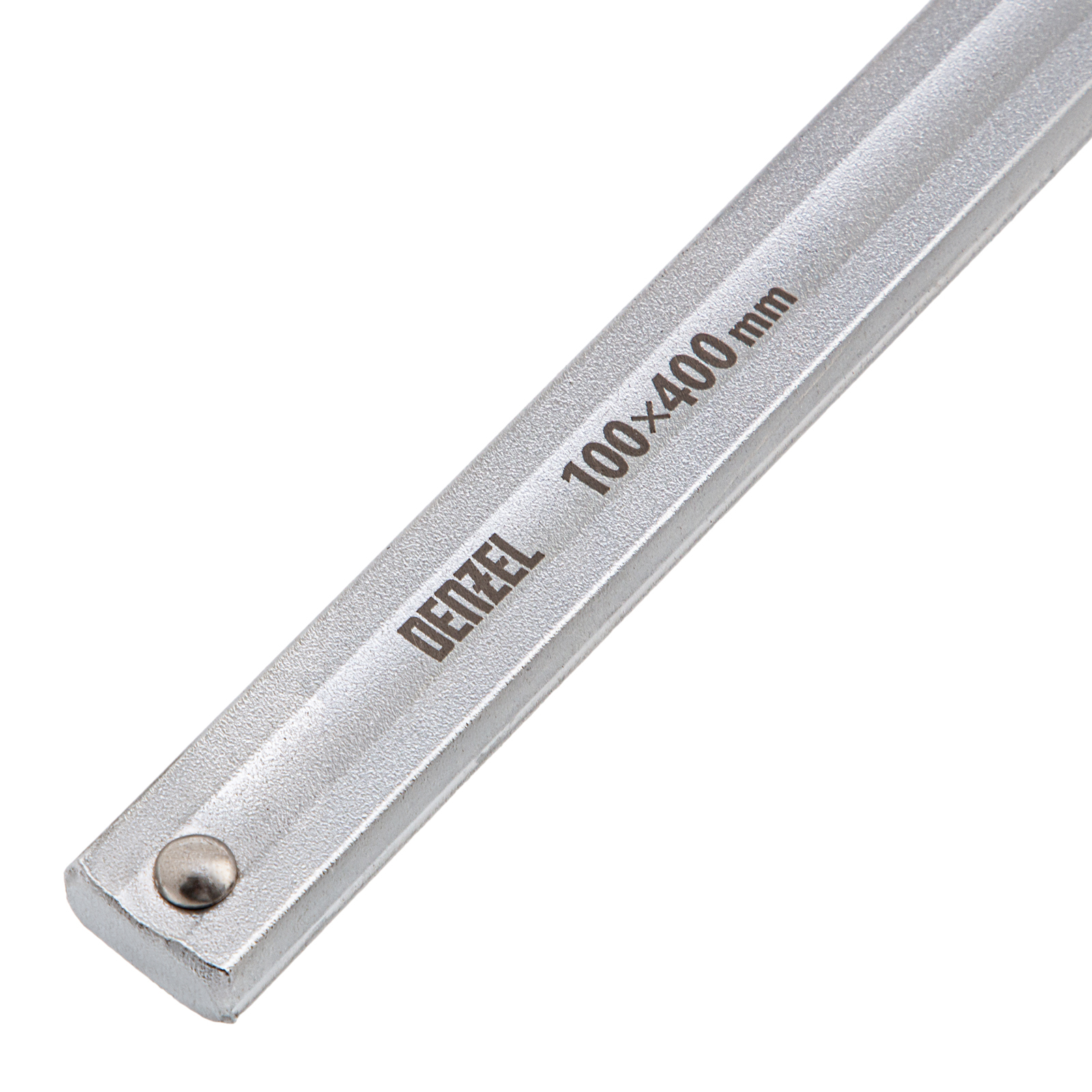 Кованая F-образная струбцина Denzel 20471 с глубиной зажима 100 мм, усиленная, предназначена для фиксации деталей шириной до 400 мм и материалов при проведении слесарных, столярных и сварочных работ. Тавровый профиль обеспечивает устойчивость конструкции к изгибу, что позволяет фиксировать детали со значительным усилием. Струбцина подходит для профессионального применения.
