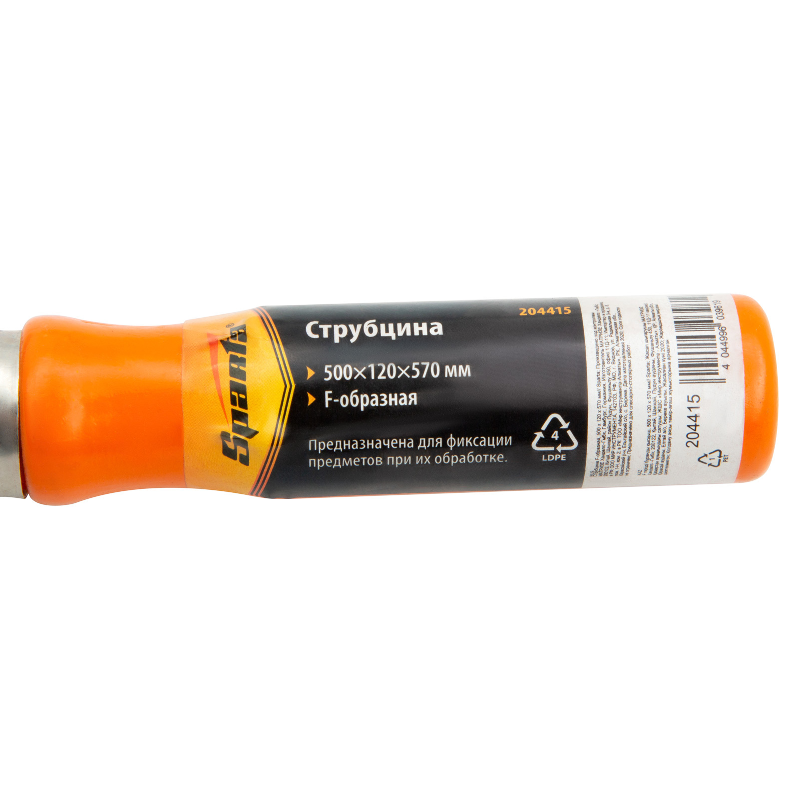 F-образная струбцина Sparta 204415, 500 х 120 х 570 мм, используется в столярном и слесарном деле и позволяет фиксировать заготовки из металла, древесины и других материалов для их соединения или обработки. Деталь помещают между губками, одна из которых подвижна и служит для регулировки величины захвата. Винтовой зажим позволяет прикладывать значительное усилие для надежной фиксации. Защитные накладки предотвращают повреждение детали. Элементы конструкции выдерживают высокую температуру, поэтому струбцина подходит для проведения сварочных работ, при этом пластиковые накладки необходимо снять.