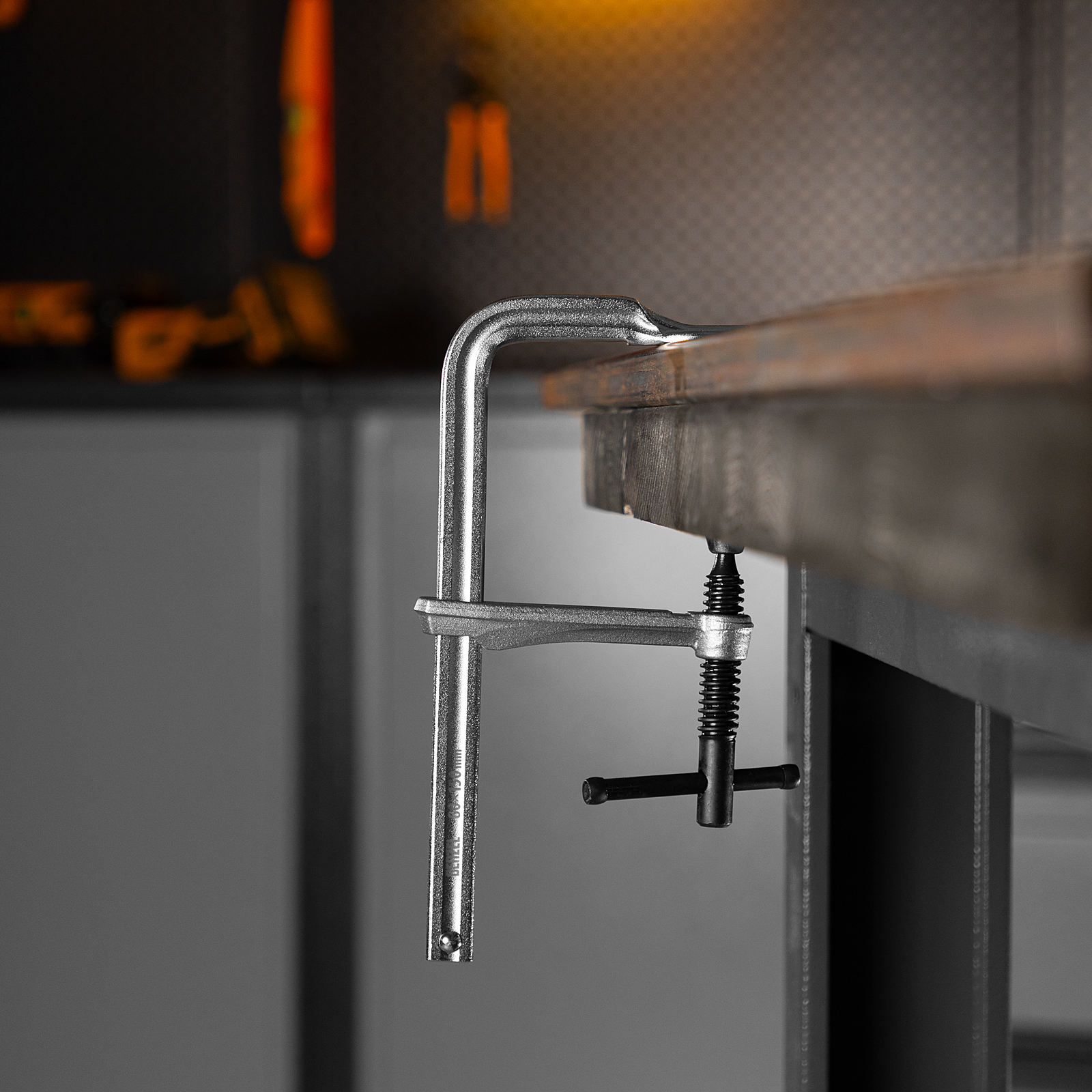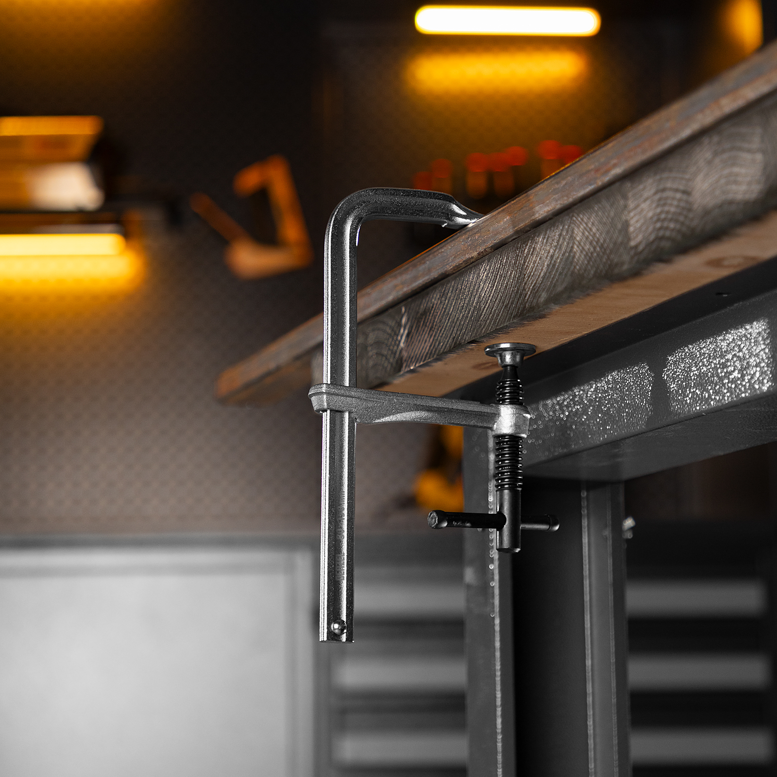 - Хромированное покрытие надежно защищает струбцину от коррозии.