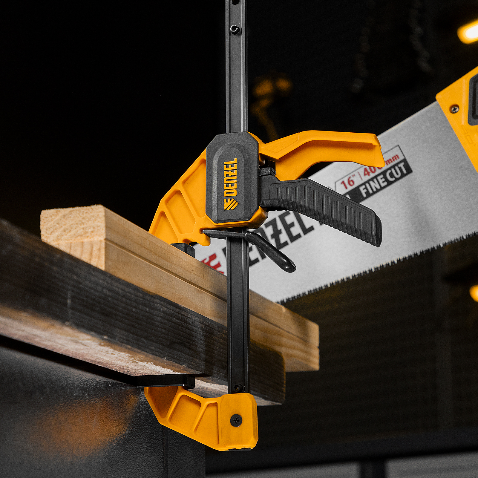 Струбцина F-образная, быстрозажимная, 150 х 55 мм, усиленный нейлоновый корпус Denzel