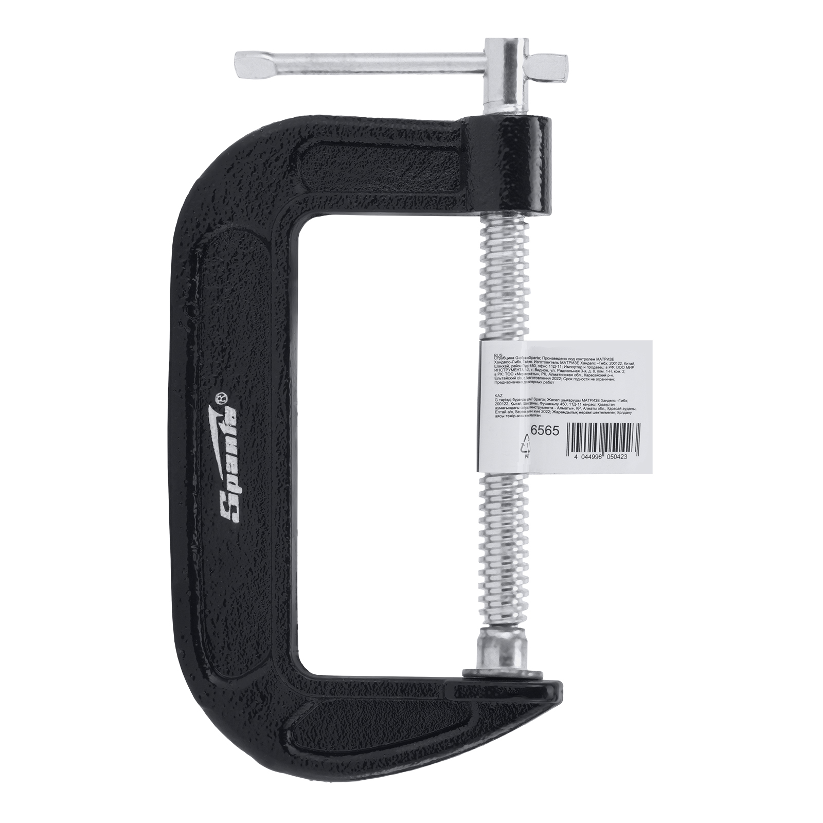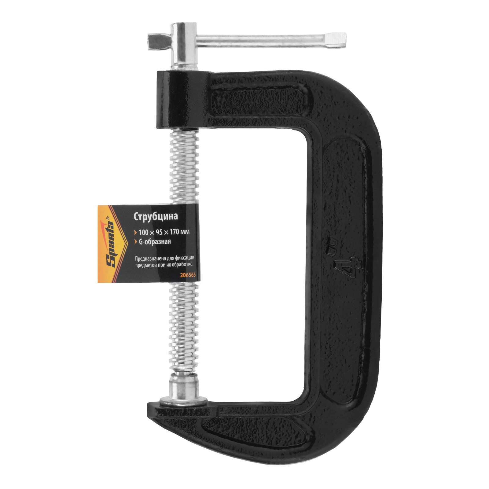 <p>G-образная струбцина Sparta 206565 с шириной зажима 100 мм надежно фиксирует различные детали для дальнейшего склеивания, сверления, пиления, шлифования или сварки. Винт с воротком и крупной червячной резьбой позволяет зажимать детали плавно и со значительным усилием. Струбцина будет полезна домашнему мастеру.</p><h2>Преимущества</h2><ul><li>Прочность — чугунная рама устойчива к нагрузкам.</li><li>Защита от коррозии и механических повреждений — на раму нанесено цветное лаковое покрытие.</li><li>Удобное использование — подвижный зажим обеспечивает надежную фиксацию заготовки.</li></ul>