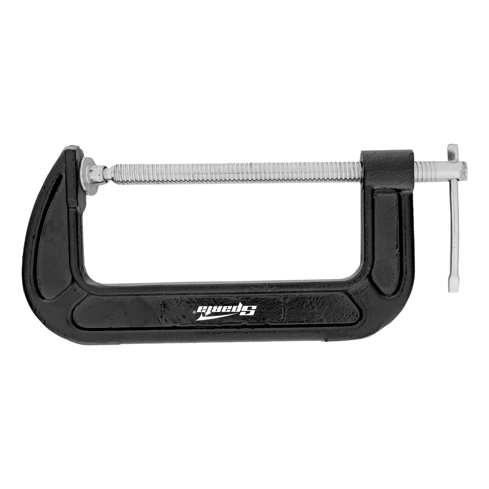 <p>G-образная струбцина Sparta 206625 с шириной зажима 150 мм надежно фиксирует различные детали для дальнейшего склеивания, сверления, пиления, шлифования или сварки. Винт с воротком и крупной червячной резьбой позволяет зажимать детали плавно и со значительным усилием. Струбцина будет полезна домашнему мастеру.</p><h2>Преимущества</h2><ul><li>Прочность — чугунная рама устойчива к нагрузкам.</li><li>Защита от коррозии и механических повреждений — на раму нанесено цветное лаковое покрытие.</li><li>Удобное использование — подвижный зажим обеспечивает надежную фиксацию заготовки.</li></ul>
