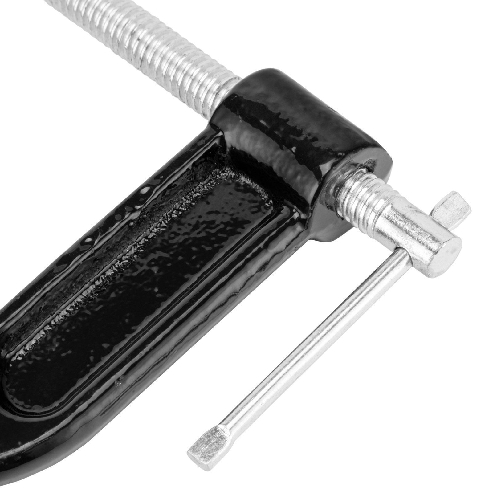 G-образная струбцина Sparta 206655 с шириной зажима 200 мм надежно фиксирует различные детали для дальнейшего склеивания, сверления, пиления, шлифования или сварки. Винт с воротком и крупной червячной резьбой позволяет зажимать детали плавно и со значительным усилием. Струбцина будет полезна домашнему мастеру.