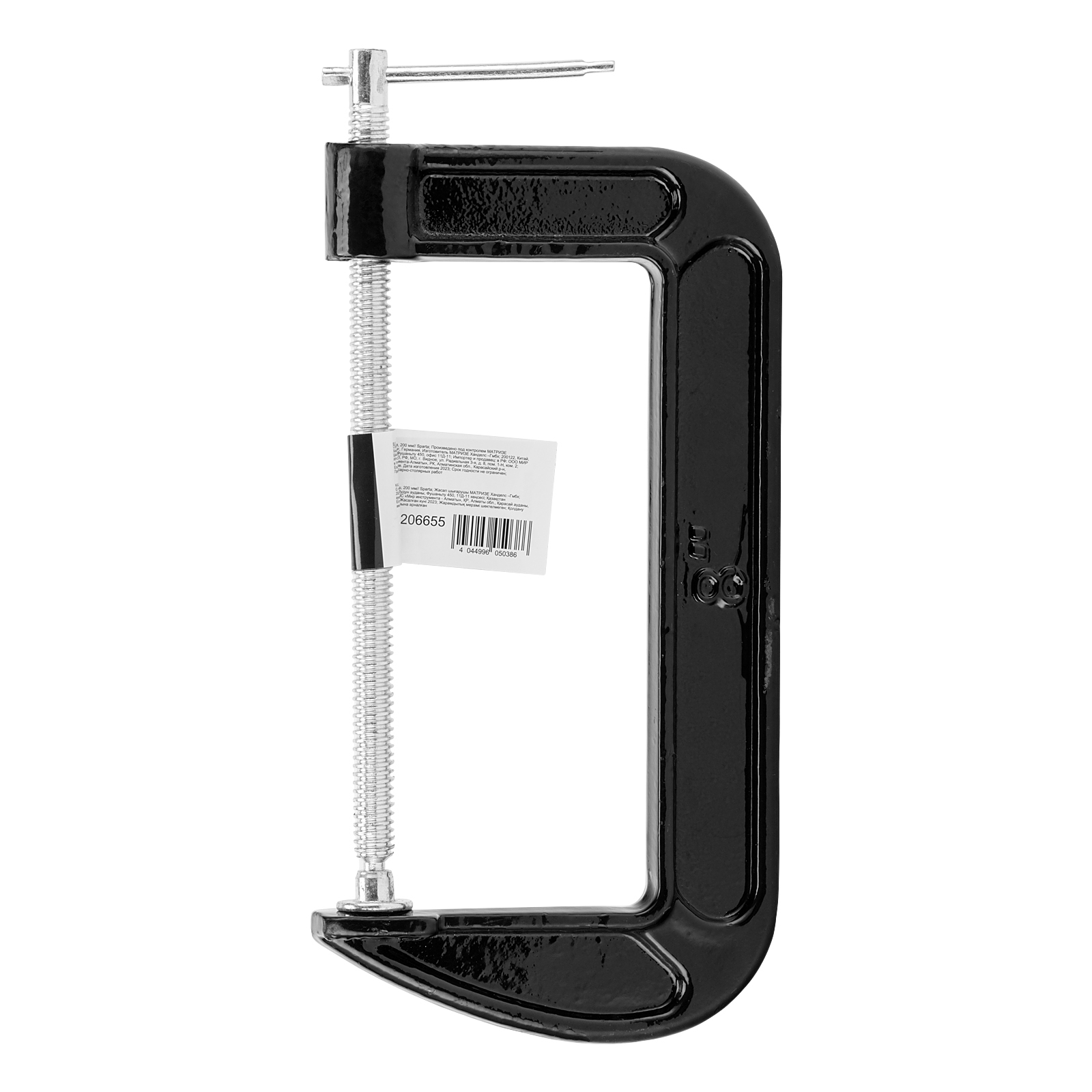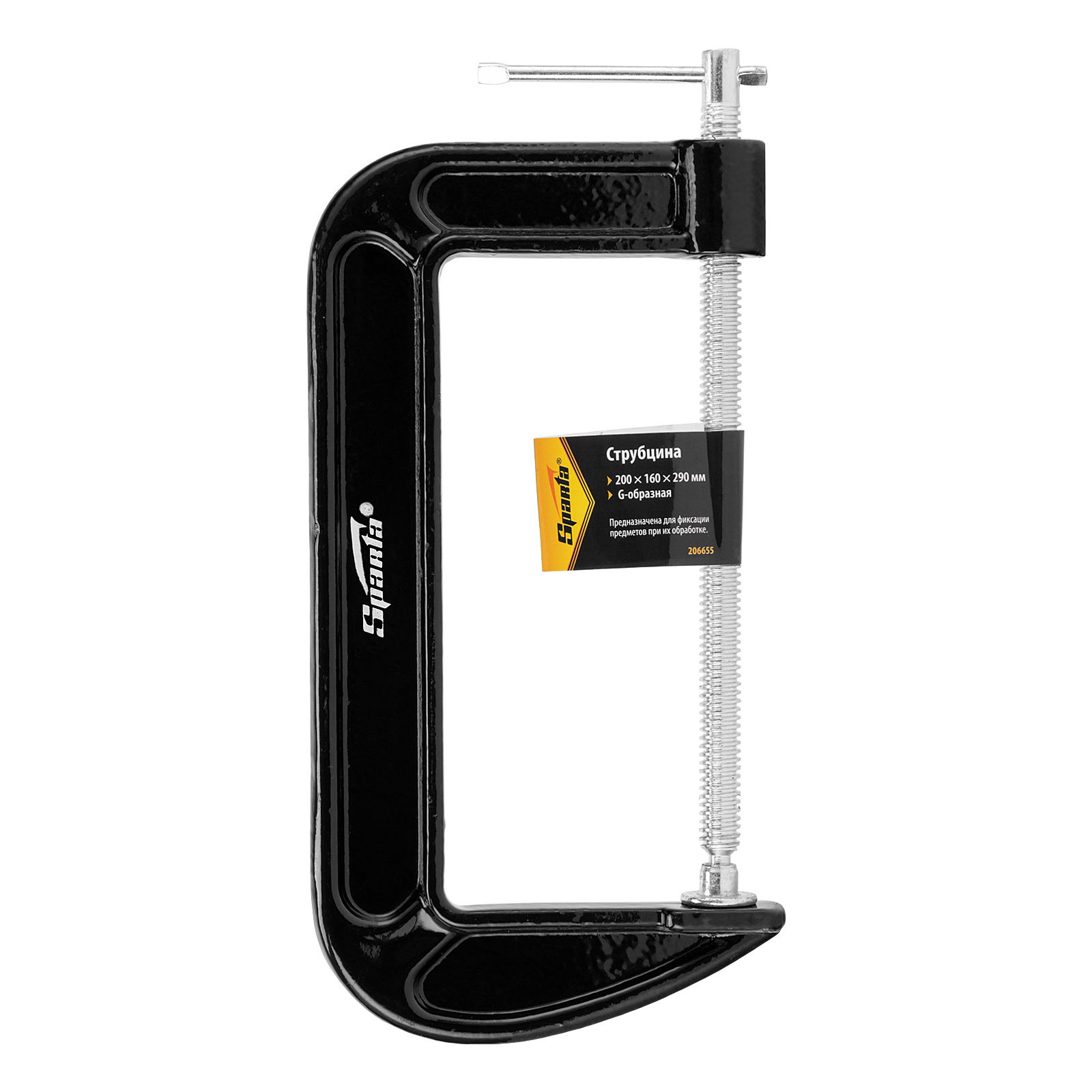 <p>G-образная струбцина Sparta 206655 с шириной зажима 200 мм надежно фиксирует различные детали для дальнейшего склеивания, сверления, пиления, шлифования или сварки. Винт с воротком и крупной червячной резьбой позволяет зажимать детали плавно и со значительным усилием. Струбцина будет полезна домашнему мастеру.</p><h2>Преимущества</h2><ul><li>Прочность — чугунная рама устойчива к нагрузкам.</li><li>Защита от коррозии и механических повреждений — на раму нанесено цветное лаковое покрытие.</li><li>Удобное использование — подвижный зажим обеспечивает надежную фиксацию заготовки.</li></ul>