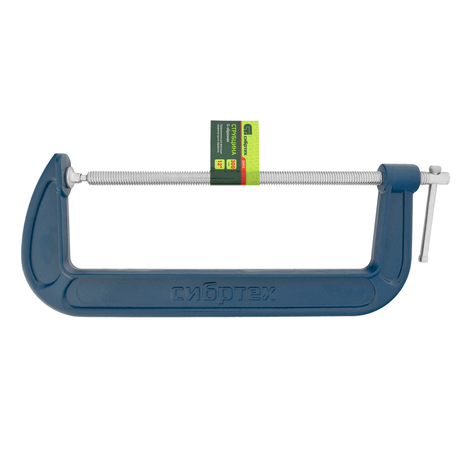 <p>Струбцина G-образная Сибртех 20592 с шириной зажима 300 мм применяется для фиксации заготовок с целью их склеивания, а также для крепления к верстаку или станку для опиливания, сверления и другой обработки. Может использоваться во время сварки металлических деталей. Рама выполнена из чугуна с шаровидным графитом, поэтому отличается высокой прочностью и устойчивостью к нагрузкам. Струбцина пригодится в слесарной и столярной мастерской, а также будет полезна в домашнем хозяйстве.</p><h2>Преимущества</h2><ul><li>Работа со значительным усилием — резьбовой шток изготовлен из прочной стали Ст3.</li><li>Надежная фиксация деталей — струбцина имеет подвижный зажим, установленный на шаровой шарнир.</li><li>Защита от коррозии — корпус струбцины покрыт порошковой эмалью, а шток оцинкован.</li></ul>