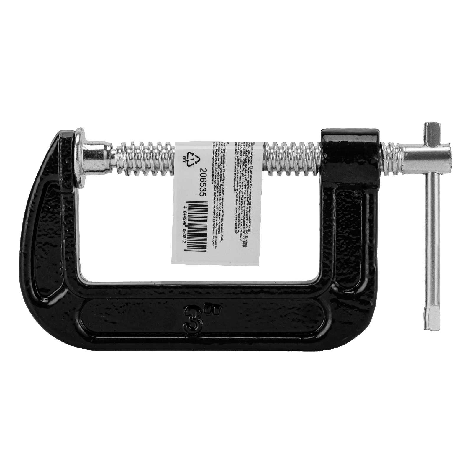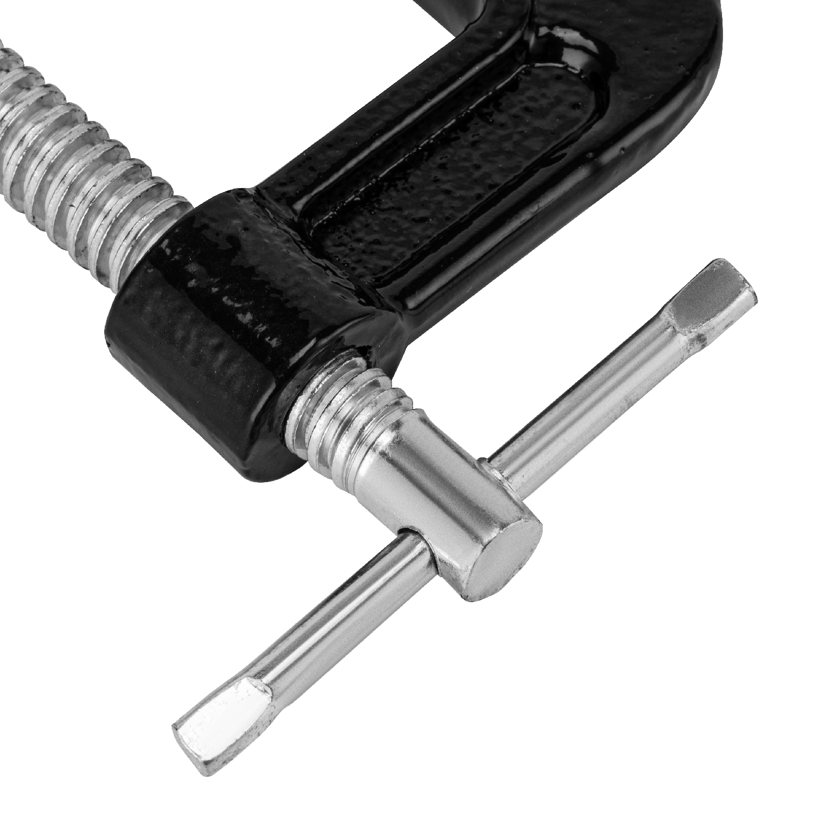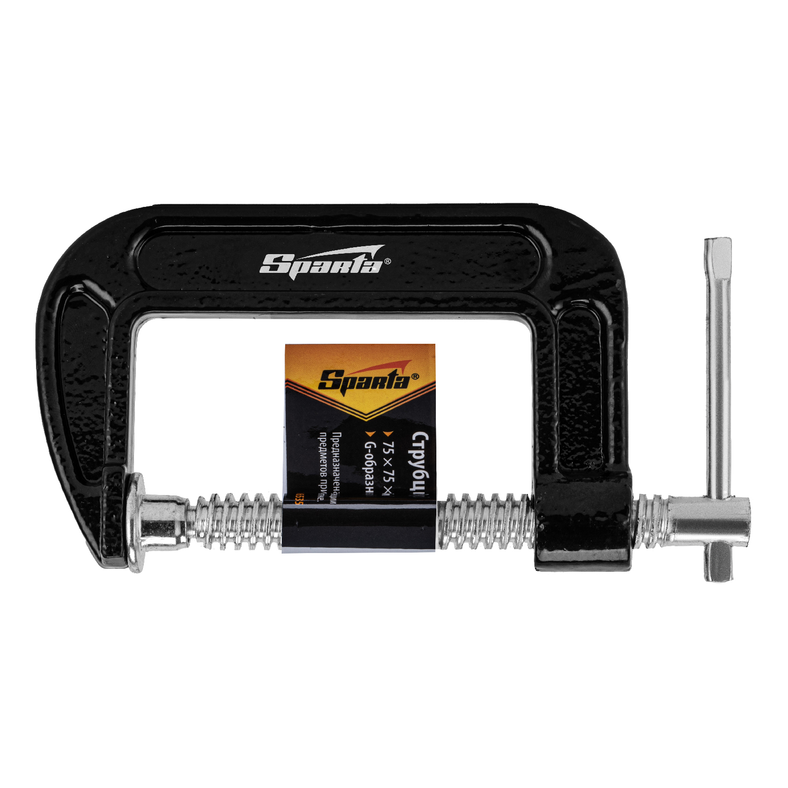 <p>G-образная струбцина Sparta 206535 с шириной зажима 75 мм надежно фиксирует различные детали для дальнейшего склеивания, сверления, пиления, шлифования или сварки. Винт с воротком и крупной червячной резьбой позволяет зажимать детали плавно и со значительным усилием. Струбцина будет полезна домашнему мастеру.</p><h2>Преимущества</h2><ul><li>Прочность — чугунная рама устойчива к нагрузкам.</li><li>Защита от коррозии и механических повреждений — на раму нанесено цветное лаковое покрытие.</li><li>Удобное использование — подвижный зажим обеспечивает надежную фиксацию заготовки.</li></ul>