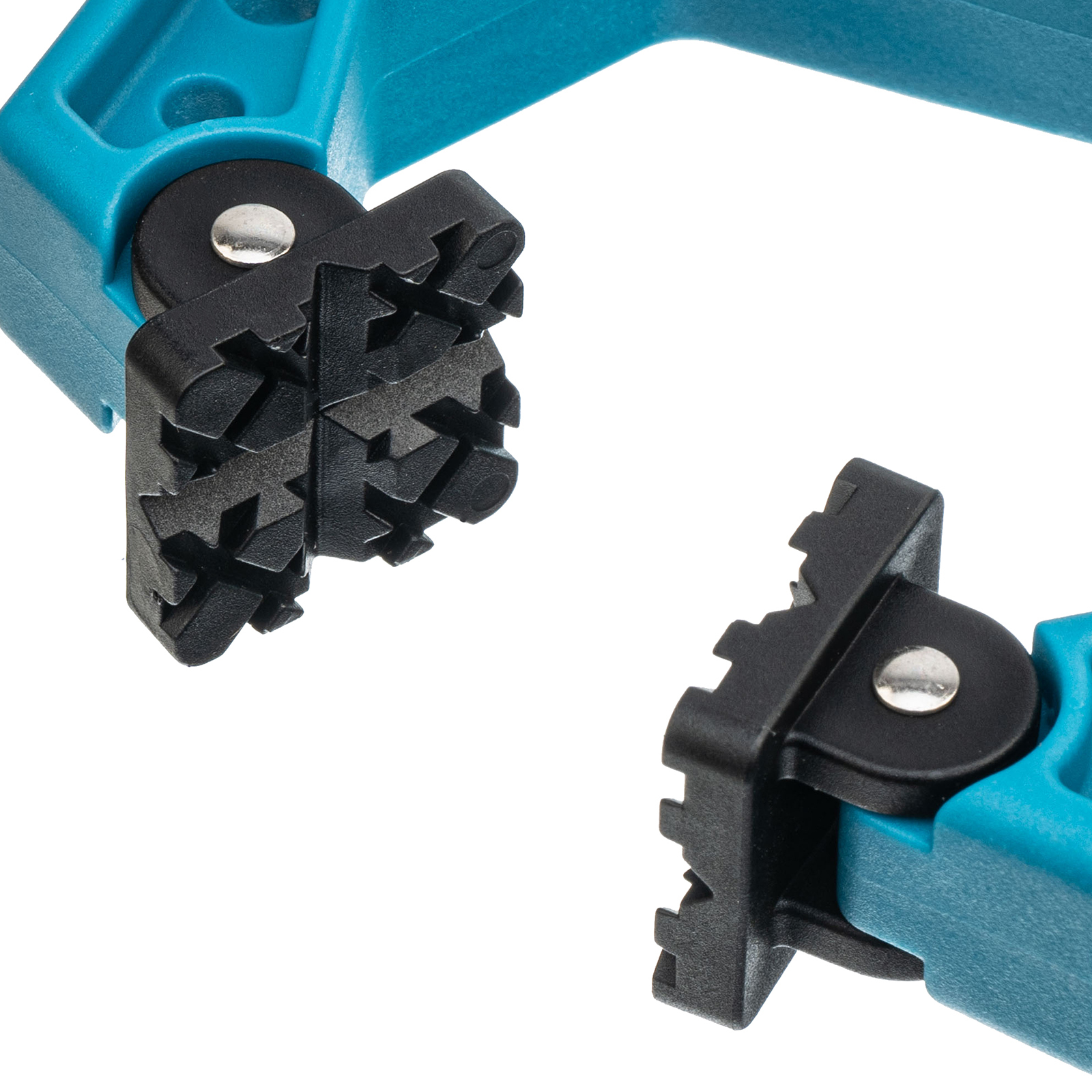 - Благодаря шарнирному креплению прижимных насадок сжимаемые детали можно устанавливать под разными углами.