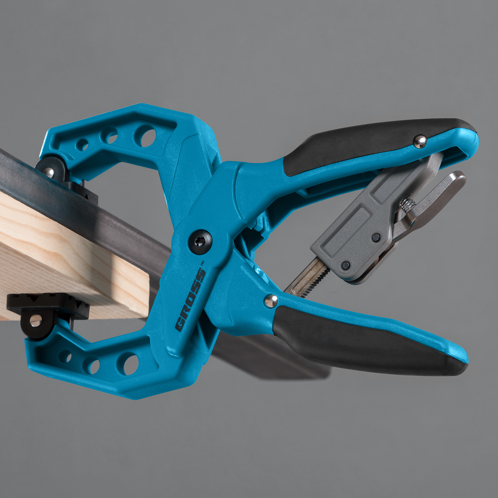 Струбцина клещеобразная 2-1/4, пластиковый корпус, храповой механизм жесткой фиксации, 58 мм Gross