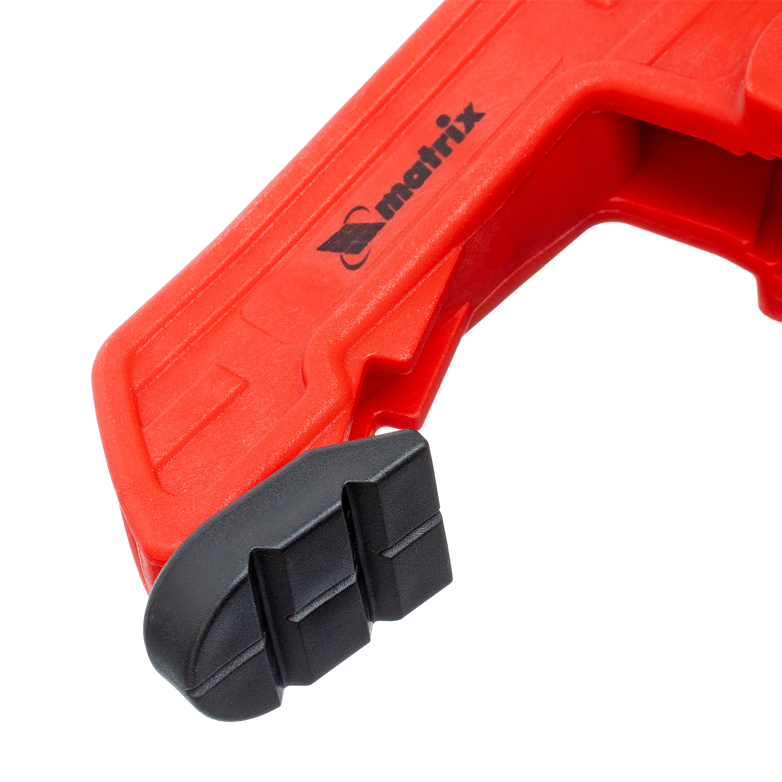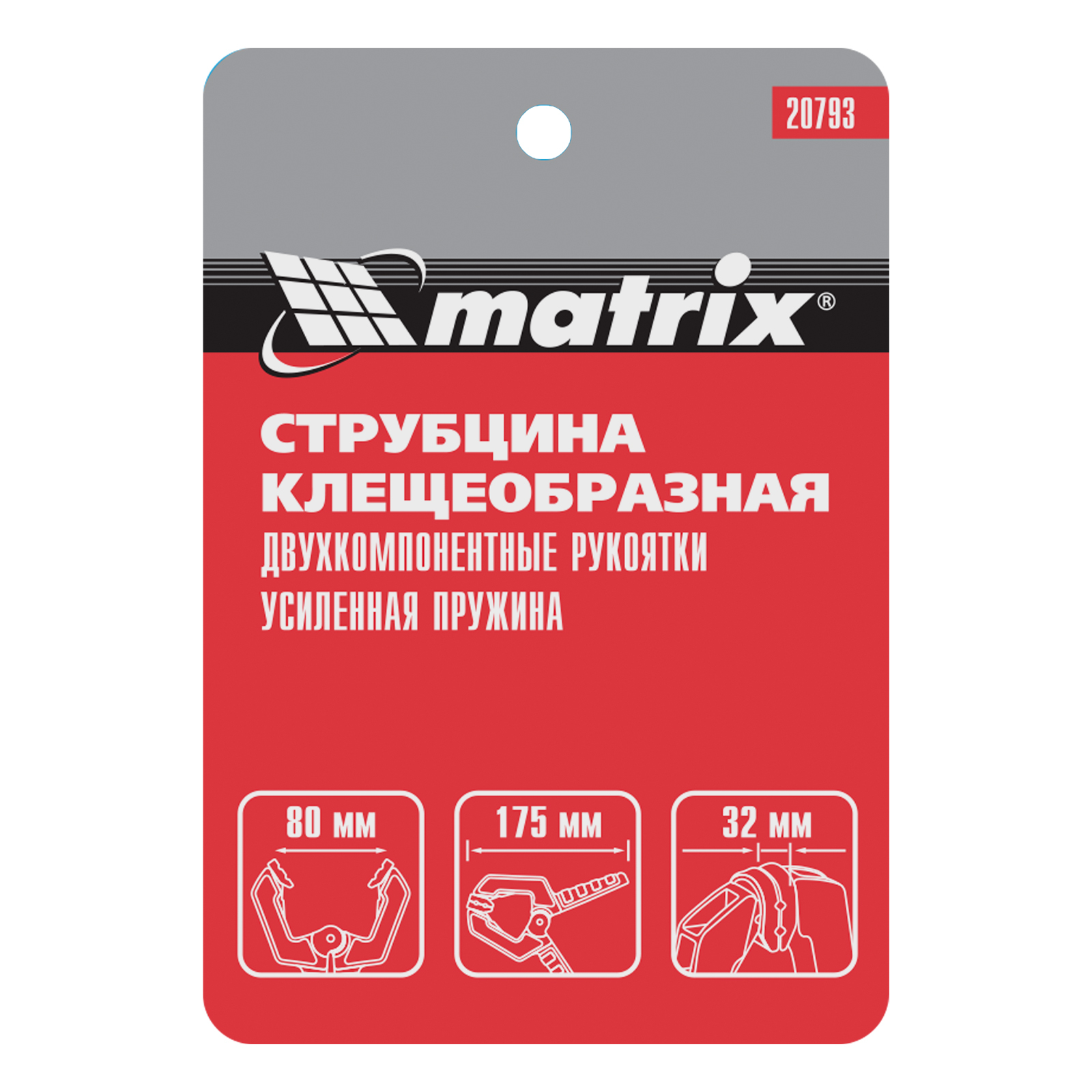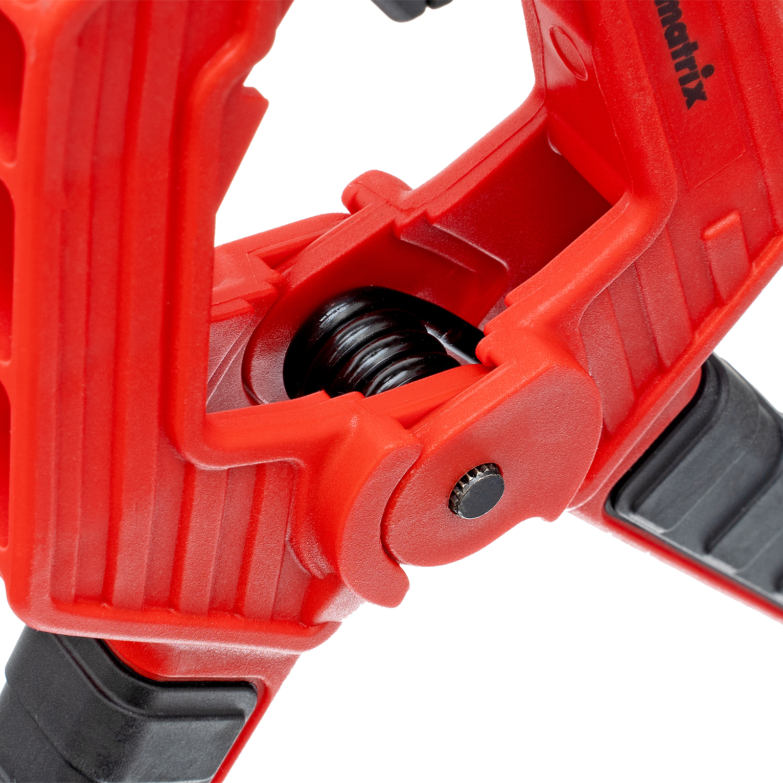 <p>Струбцина клещеобразная Matrix 20793 с усиленной пружиной, в пластиковом корпусе, с двухкомпонентными рукоятками, способна зажимать и крепко удерживать детали толщиной до 3" (75 мм). Пригодится для склеивания или разметки заготовок. Струбцина пригодится в столярной мастерской, дома или на даче.</p><h2>Преимущества</h2><ul><li>Устойчивость к высоким нагрузкам — корпус из ударопрочного пластика усилен ребрами жесткости.</li><li>Максимально точное позиционирование детали при захвате — губки являются подвижными, на прижимных поверхностях имеются углубления.</li><li>Комфортная работа — двухкомпонентные рукоятки с рельефной поверхностью обеспечивают надежный хват.</li></ul>