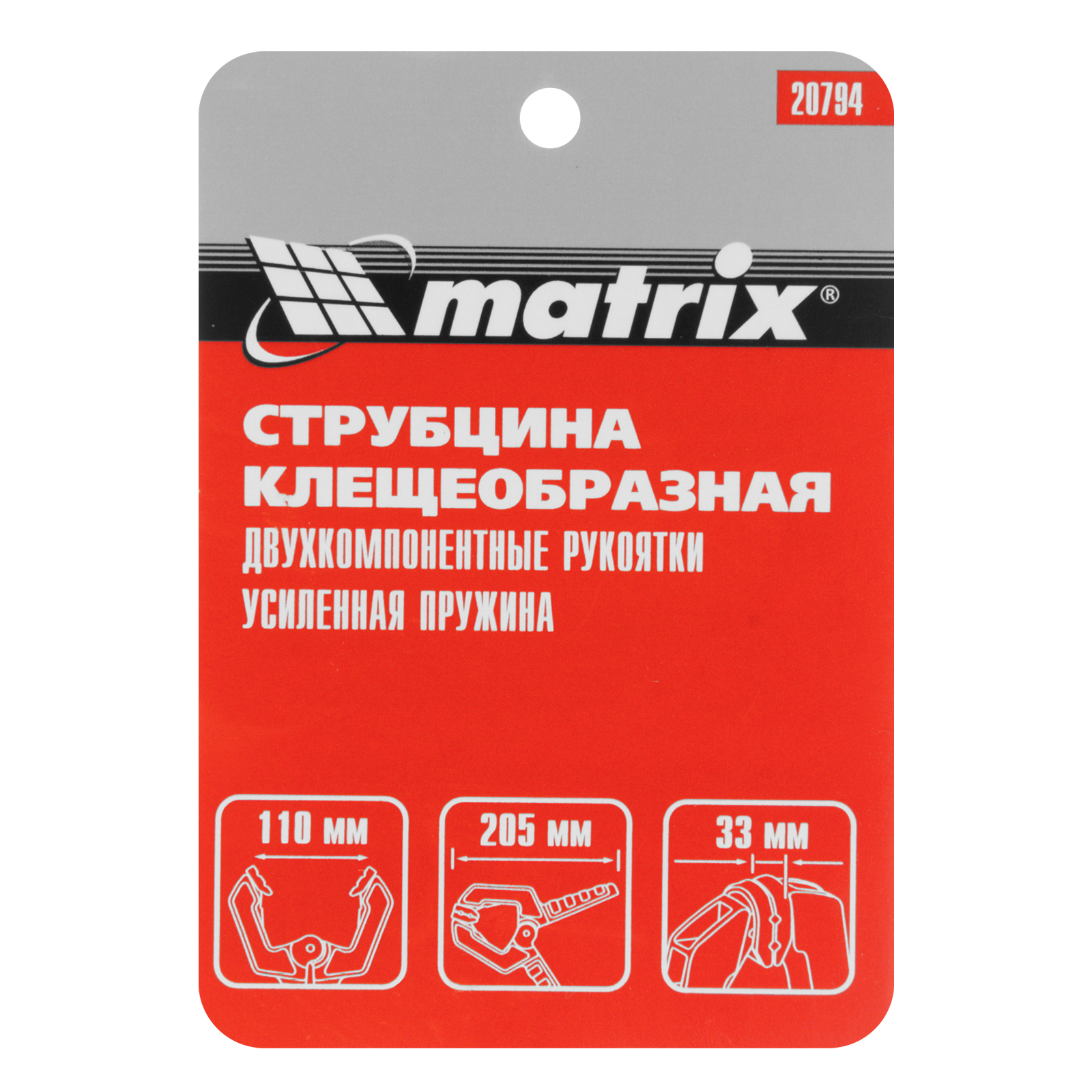 <p>Струбцина клещеобразная Matrix 20794 с усиленной пружиной, в пластиковом корпусе, с двухкомпонентными рукоятками, способна зажимать и крепко удерживать детали толщиной до 4" (100 мм). Пригодится для склеивания или разметки заготовок. Струбцина пригодится в столярной мастерской, дома или на даче.</p><h2>Преимущества</h2><ul><li>Устойчивость к высоким нагрузкам — корпус из ударопрочного пластика усилен ребрами жесткости.</li><li>Максимально точное позиционирование детали при захвате — губки являются подвижными, на прижимных поверхностях имеются углубления.</li><li>Комфортная работа — двухкомпонентные рукоятки с рельефной поверхностью обеспечивают надежный хват.</li></ul>